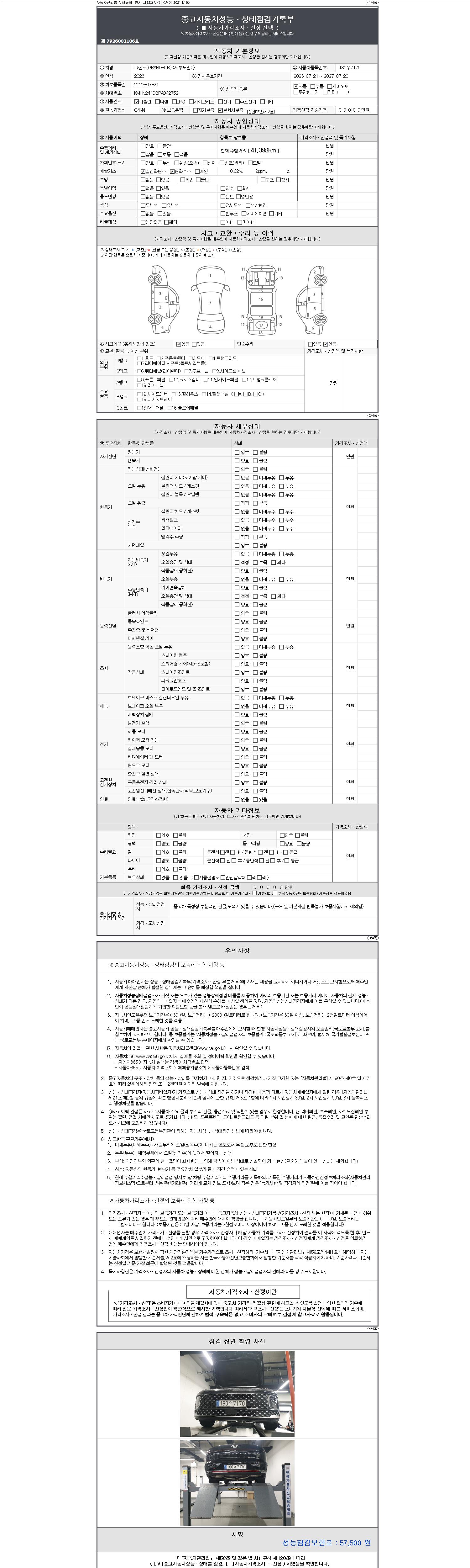 2. 차량 등록증이나 성능점검지 등을 상담자에게 요청및 확인하시고 사전에 미리 점검 하시기를 권유드립니다.