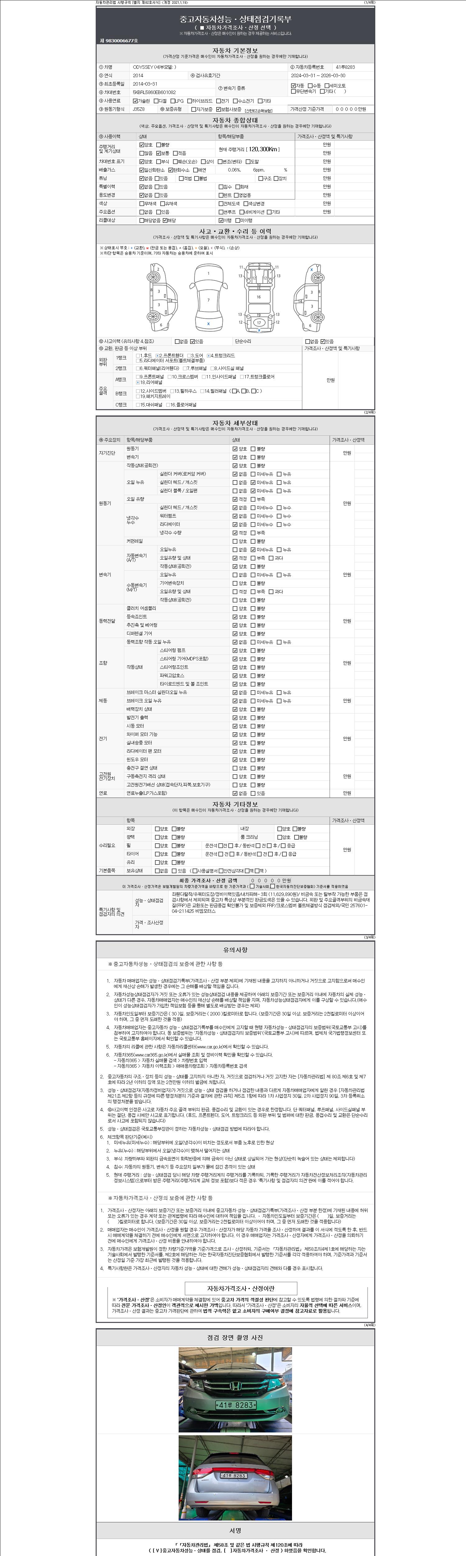 -중고자동차 매매업자를 통해 차량을 구입하실 경우 반드시 "중고자동차 성능, 상태점검 기록부"를 교뷰 받으셔야 하며, 매매업자는 반드시 의무 교부 하여야 압니다.