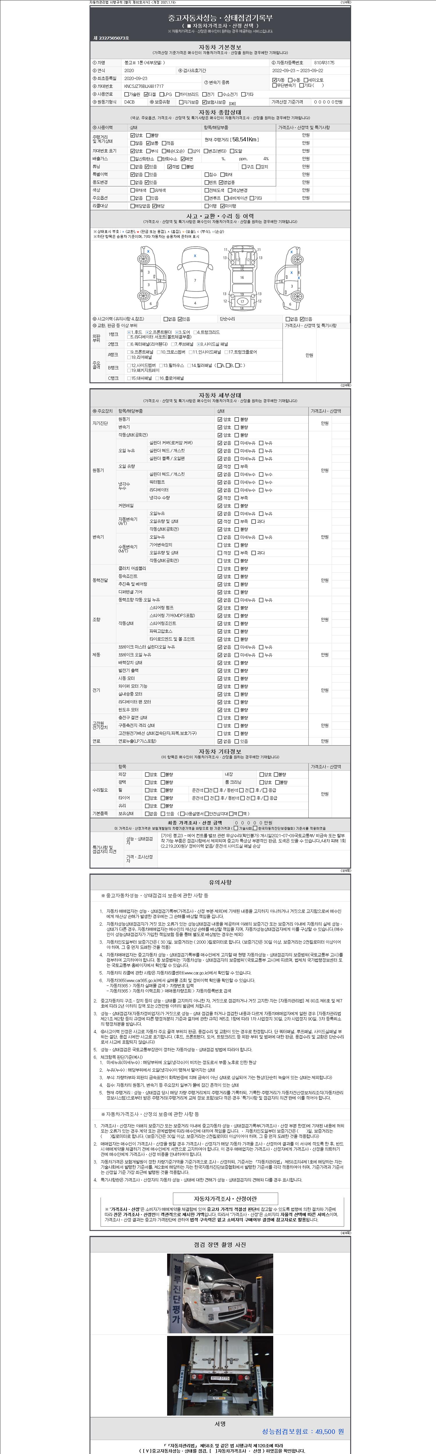 사고유무 성능기록부 참조 제시번호 제 2147483647 호