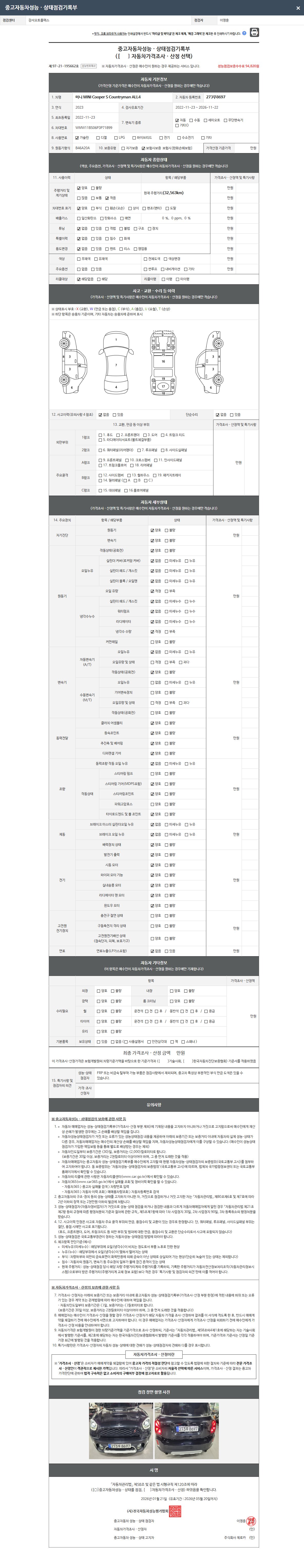 -중고자동차 매매업자를 통해 차량을 구입하실 경우 반드시 "중고자동차 성능, 상태점검 기록부"를 교뷰 받으셔야 하며, 매매업자는 반드시 의무 교부 하여야 압니다.