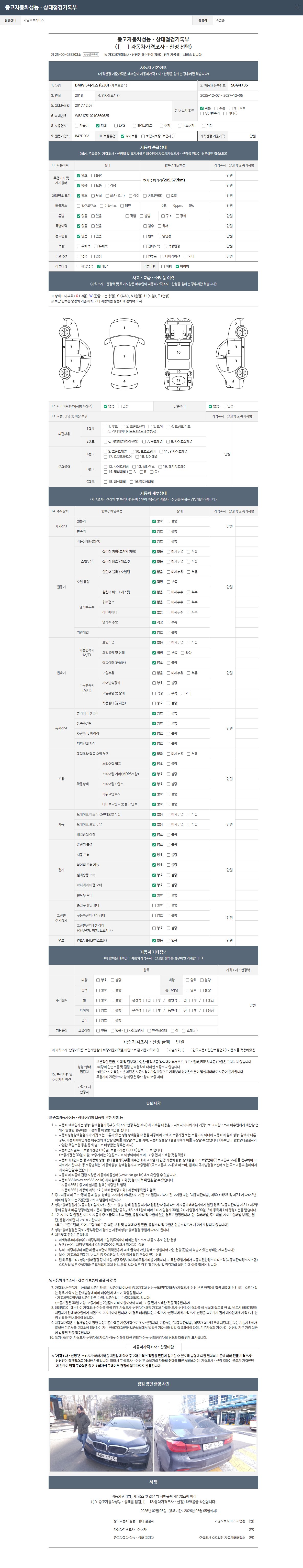 2. 차량 등록증이나 성능점검지 등을 상담자에게 요청및 확인하시고 사전에 미리 점검 하시기를 권유드립니다.