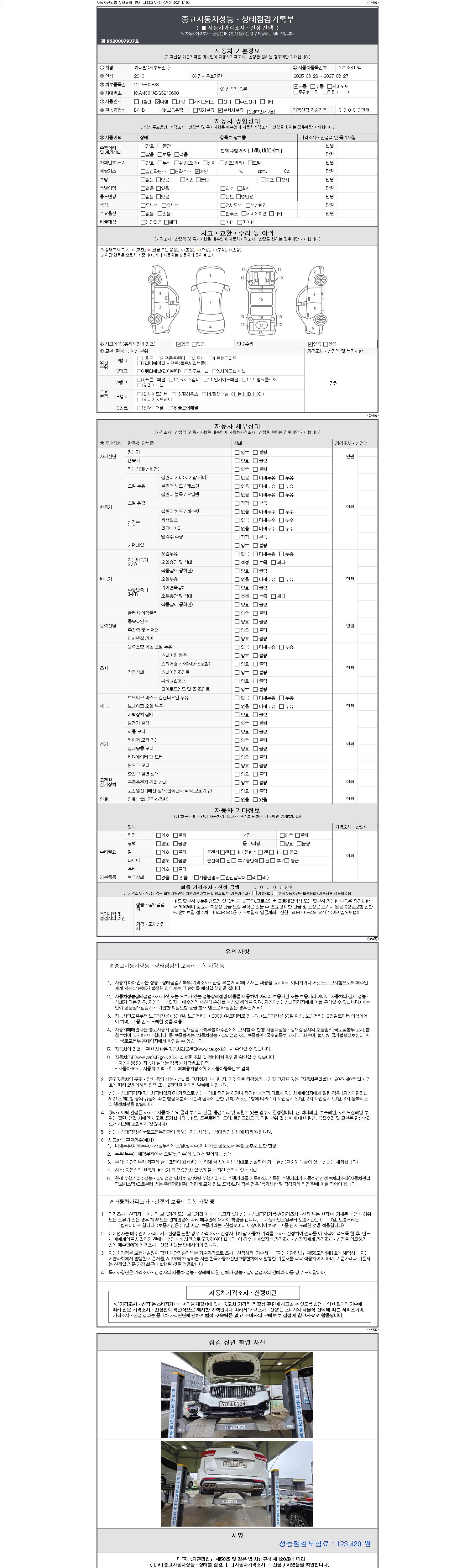 2. 차량 등록증이나 성능점검지 등을 상담자에게 요청및 확인하시고 사전에 미리 점검 하시기를 권유드립니다.