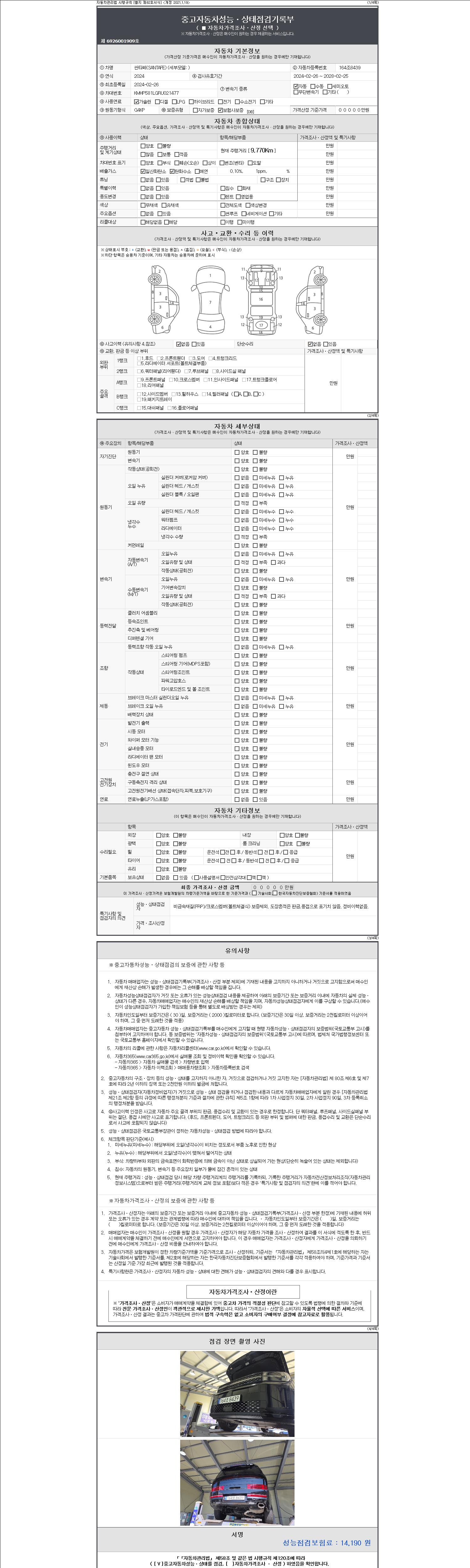 2. 차량 등록증이나 성능점검지 등을 상담자에게 요청및 확인하시고 사전에 미리 점검 하시기를 권유드립니다.