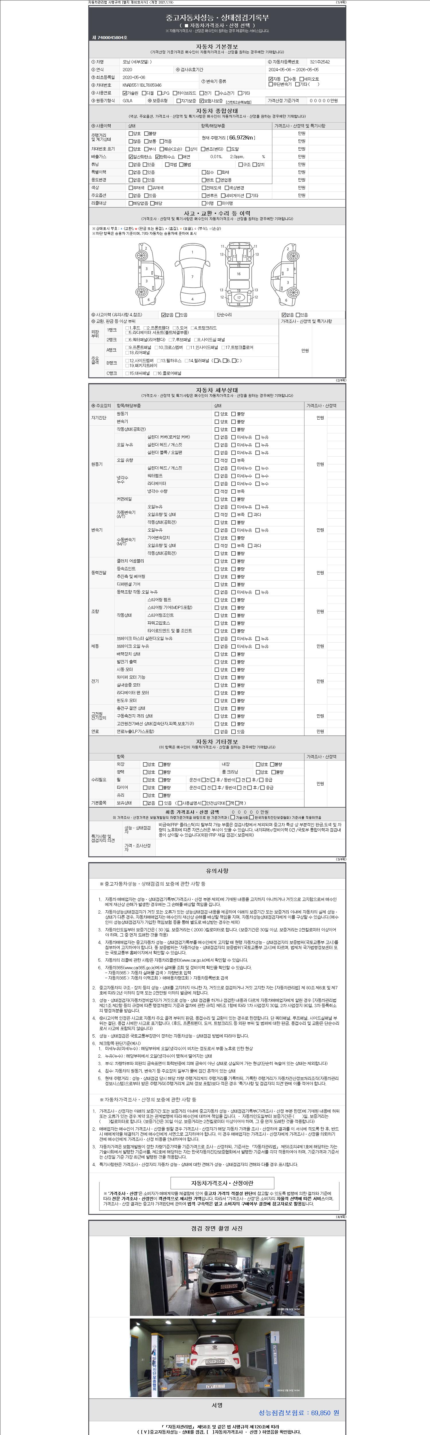 2. 차량 등록증이나 성능점검지 등을 상담자에게 요청및 확인하시고 사전에 미리 점검 하시기를 권유드립니다.