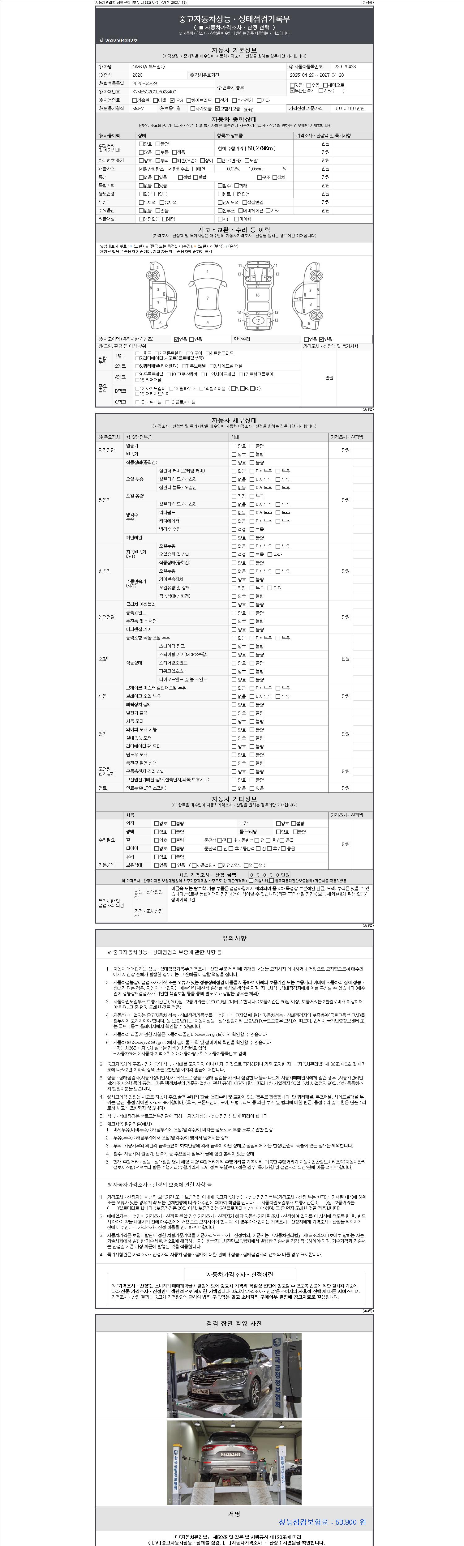2. 차량 등록증이나 성능점검지 등을 상담자에게 요청및 확인하시고 사전에 미리 점검 하시기를 권유드립니다.