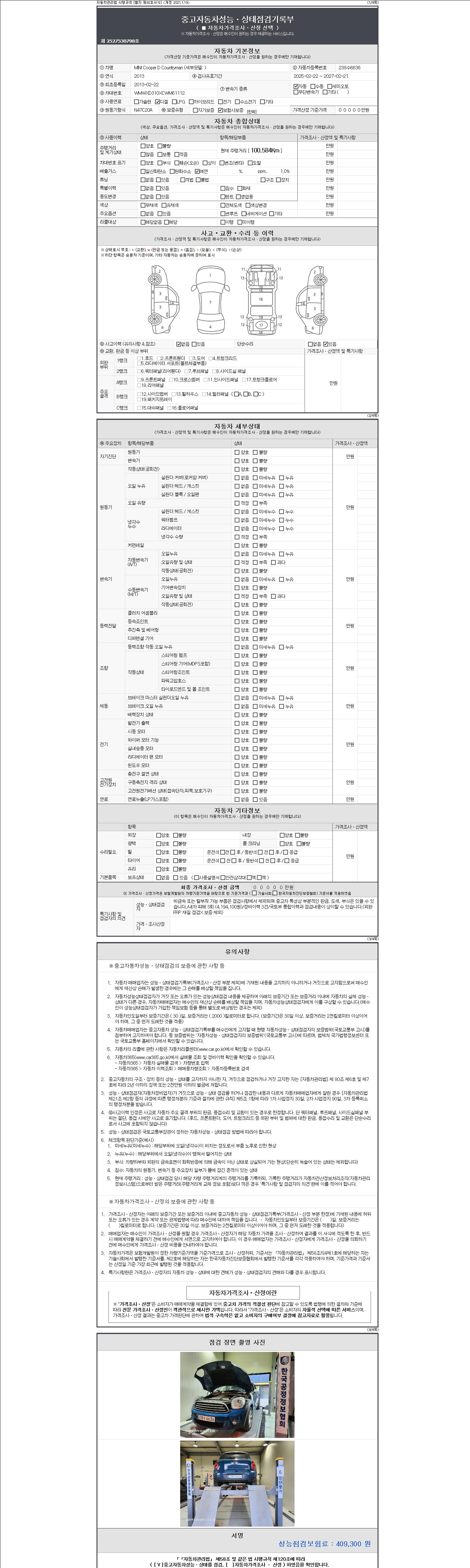 -중고자동차 매매업자를 통해 차량을 구입하실 경우 반드시 "중고자동차 성능, 상태점검 기록부"를 교뷰 받으셔야 하며, 매매업자는 반드시 의무 교부 하여야 압니다.