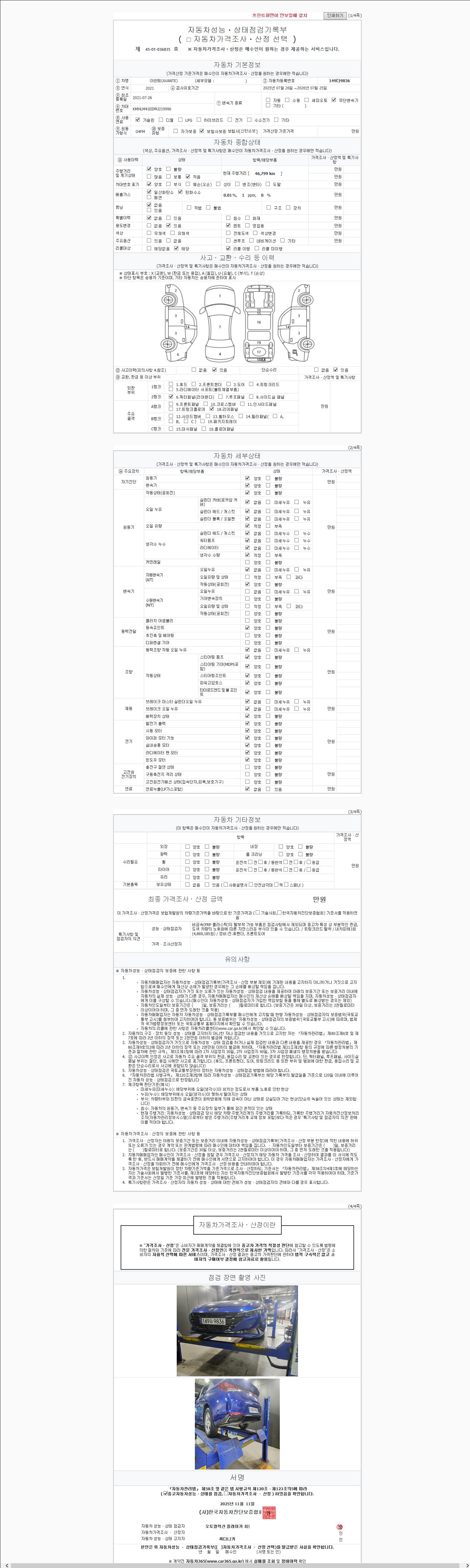 2. 차량 등록증이나 성능점검지 등을 상담자에게 요청및 확인하시고 사전에 미리 점검 하시기를 권유드립니다.