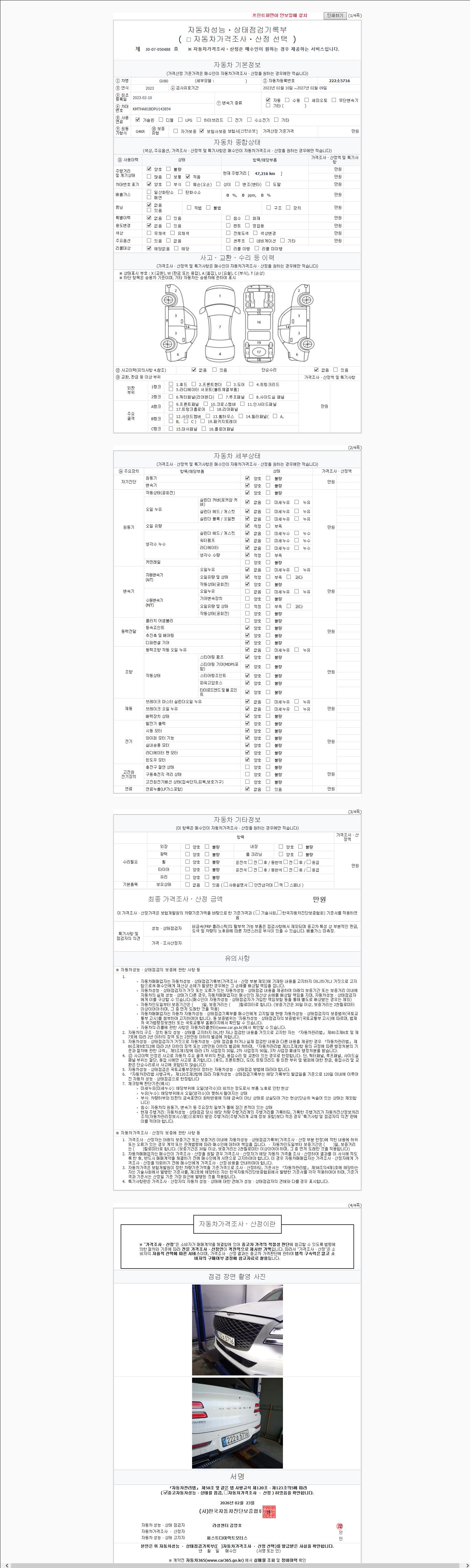 2. 차량 등록증이나 성능점검지 등을 상담자에게 요청및 확인하시고 사전에 미리 점검 하시기를 권유드립니다.