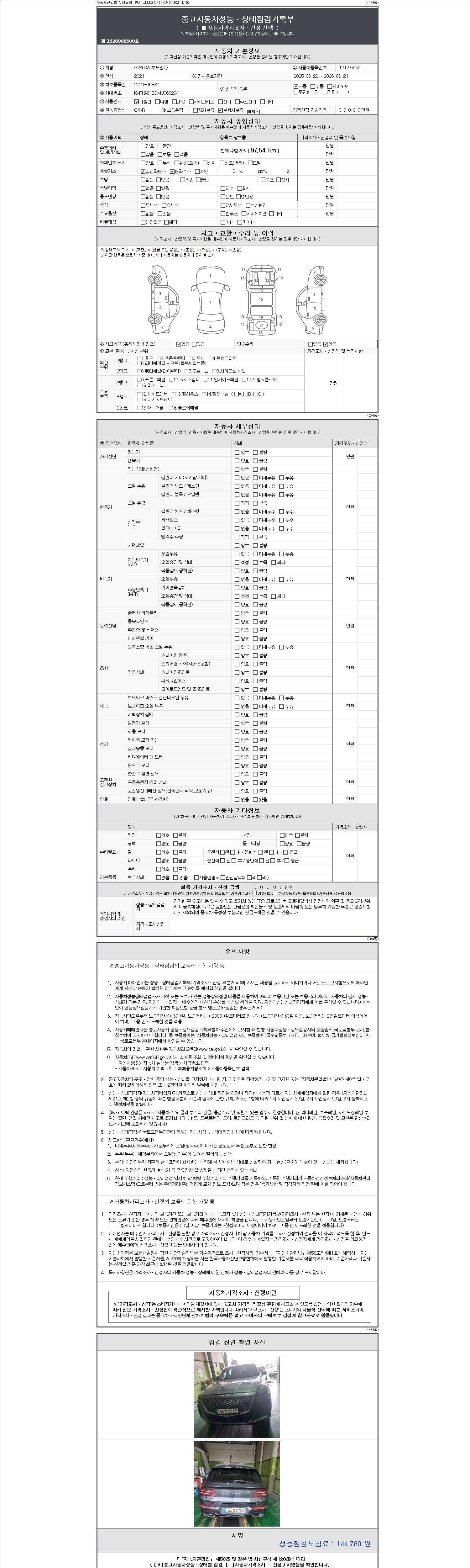 -중고자동차 매매업자를 통해 차량을 구입하실 경우 반드시 "중고자동차 성능, 상태점검 기록부"를 교뷰 받으셔야 하며, 매매업자는 반드시 의무 교부 하여야 압니다.