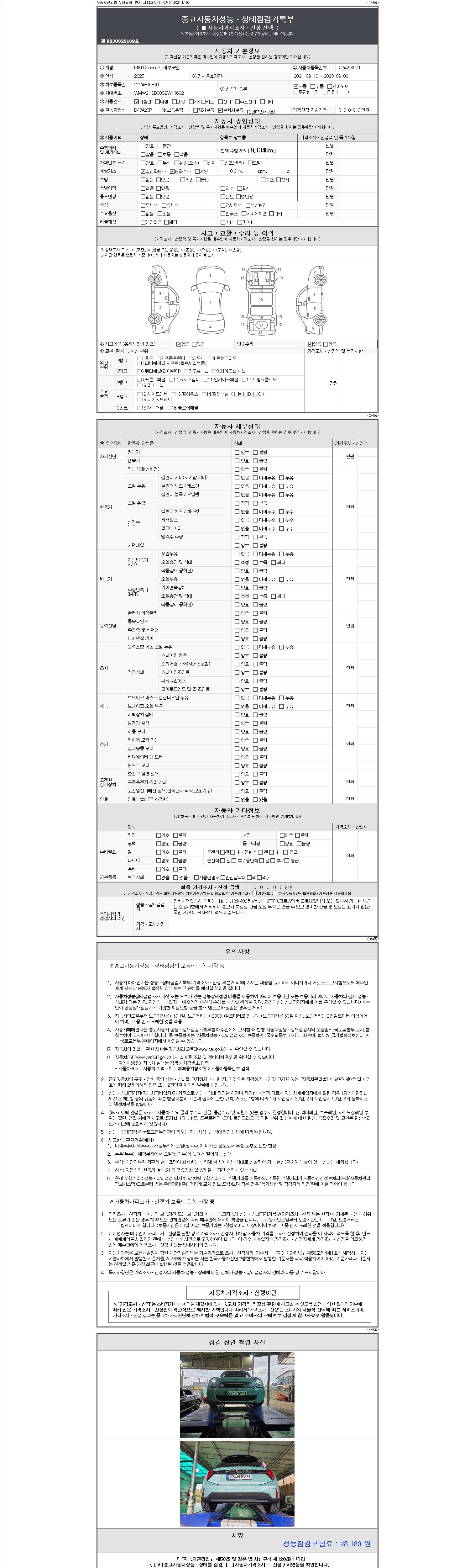 3. 차량의 이미지중 차량번호가 의도적으로 가공, 편집 된 경우나 지나치게 가격이 낮을 경우 더욱 세심한 주위를 요구합니다.