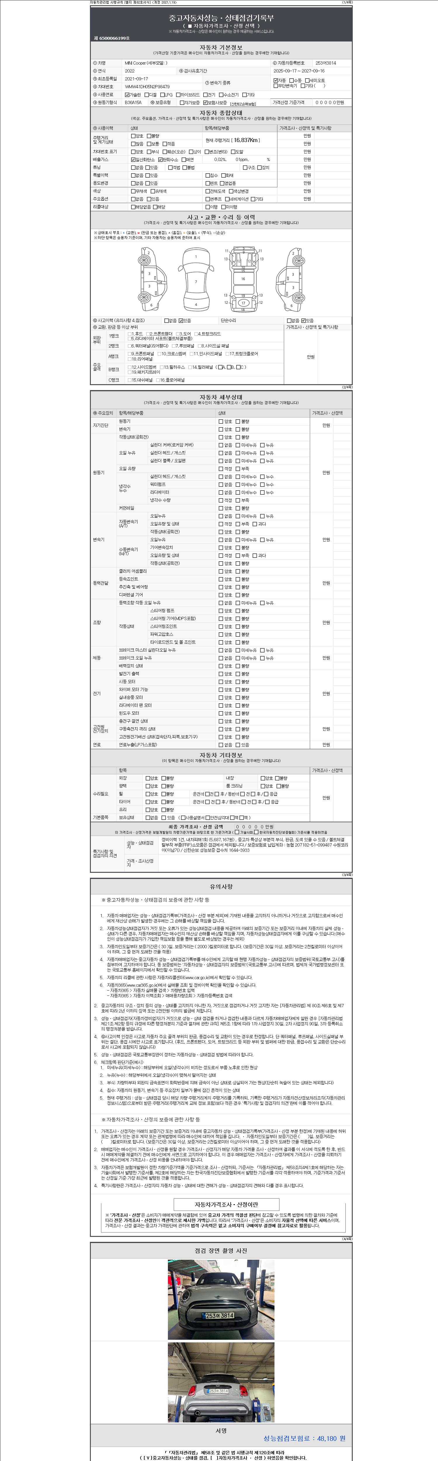 사고유무 성능기록부 참조 제시번호 제 2147483647 호