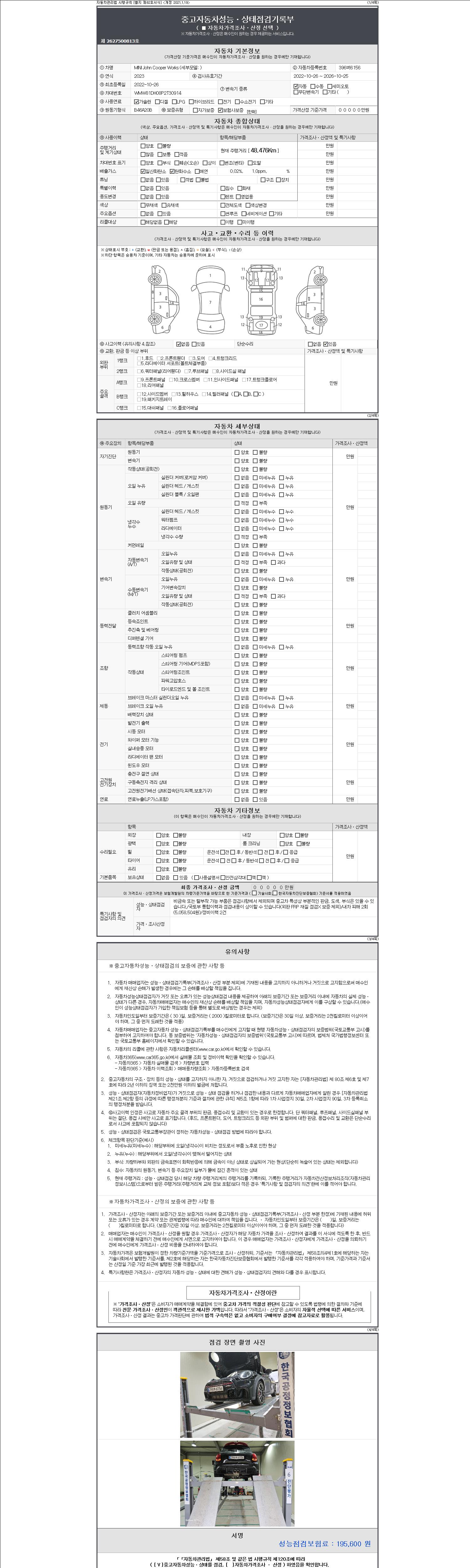 -중고자동차 매매업자를 통해 차량을 구입하실 경우 반드시 "중고자동차 성능, 상태점검 기록부"를 교뷰 받으셔야 하며, 매매업자는 반드시 의무 교부 하여야 압니다.