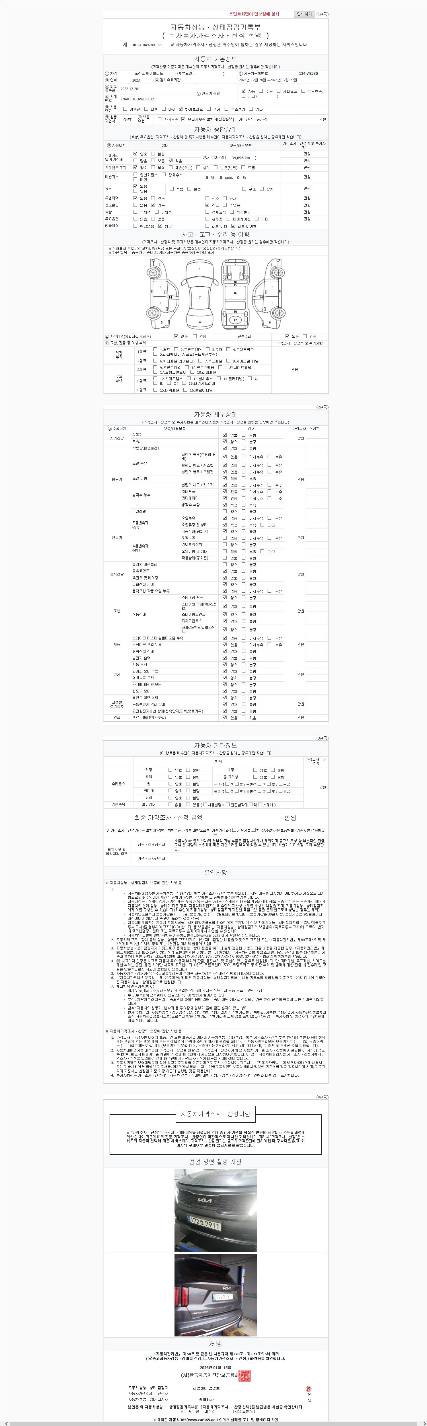 -중고자동차 매매업자를 통해 차량을 구입하실 경우 반드시 "중고자동차 성능, 상태점검 기록부"를 교뷰 받으셔야 하며, 매매업자는 반드시 의무 교부 하여야 압니다.