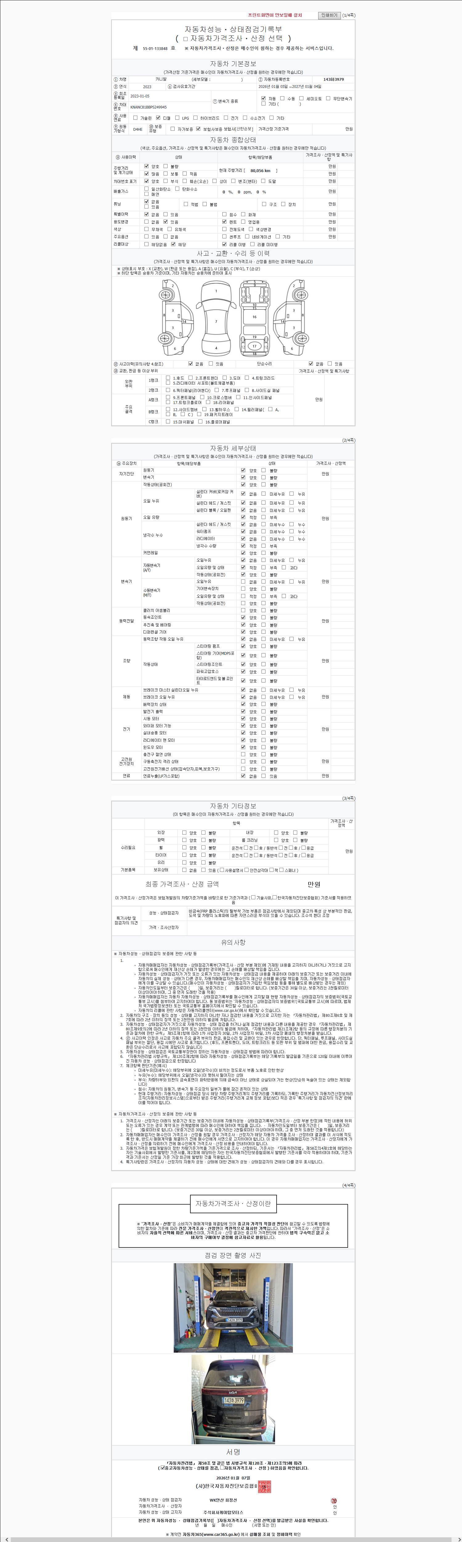 2. 차량 등록증이나 성능점검지 등을 상담자에게 요청및 확인하시고 사전에 미리 점검 하시기를 권유드립니다.