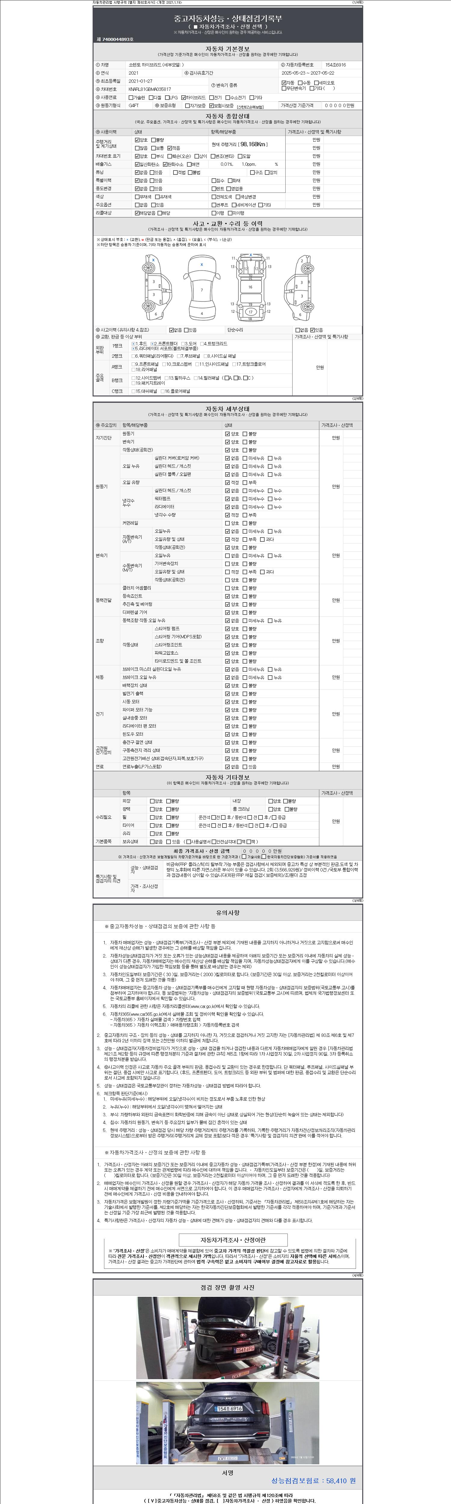 2. 차량 등록증이나 성능점검지 등을 상담자에게 요청및 확인하시고 사전에 미리 점검 하시기를 권유드립니다.