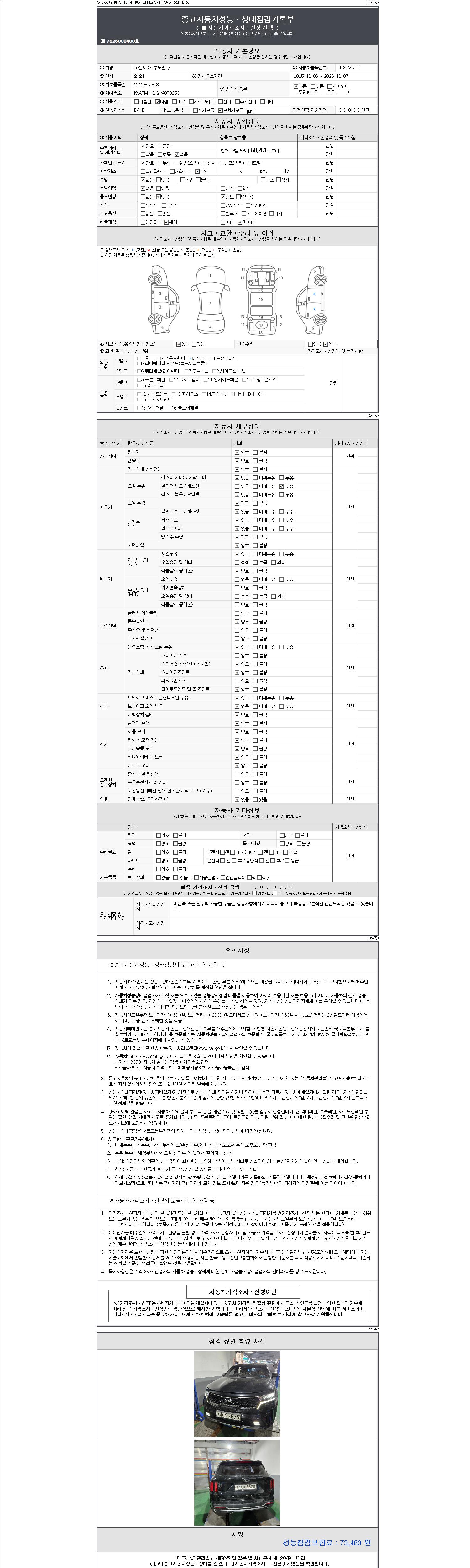 2. 차량 등록증이나 성능점검지 등을 상담자에게 요청및 확인하시고 사전에 미리 점검 하시기를 권유드립니다.