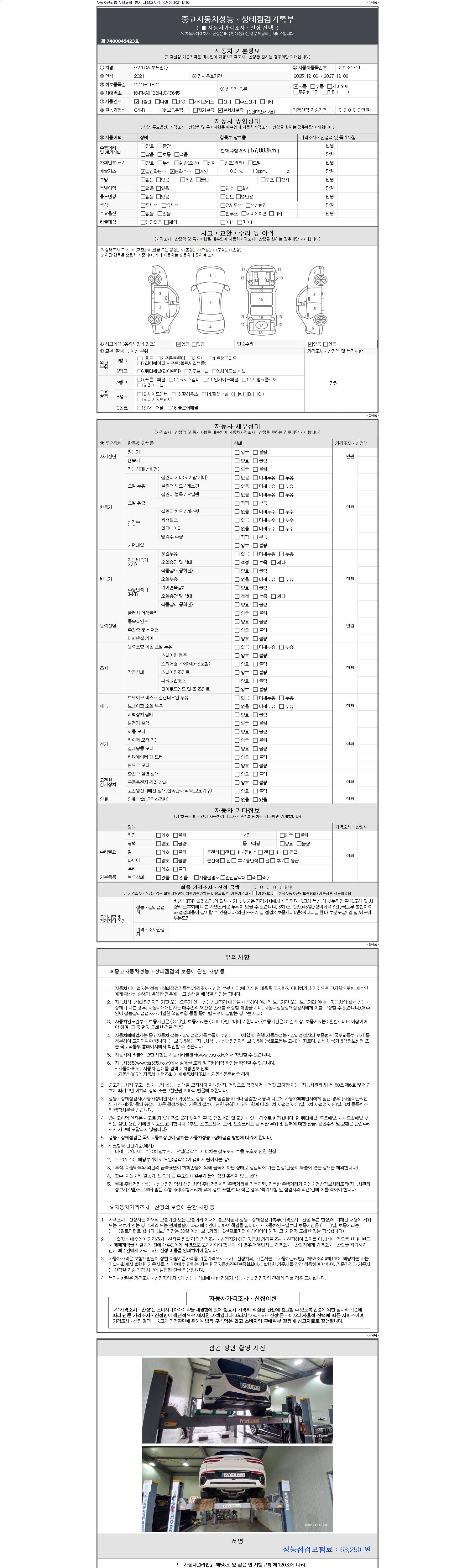2. 차량 등록증이나 성능점검지 등을 상담자에게 요청및 확인하시고 사전에 미리 점검 하시기를 권유드립니다.