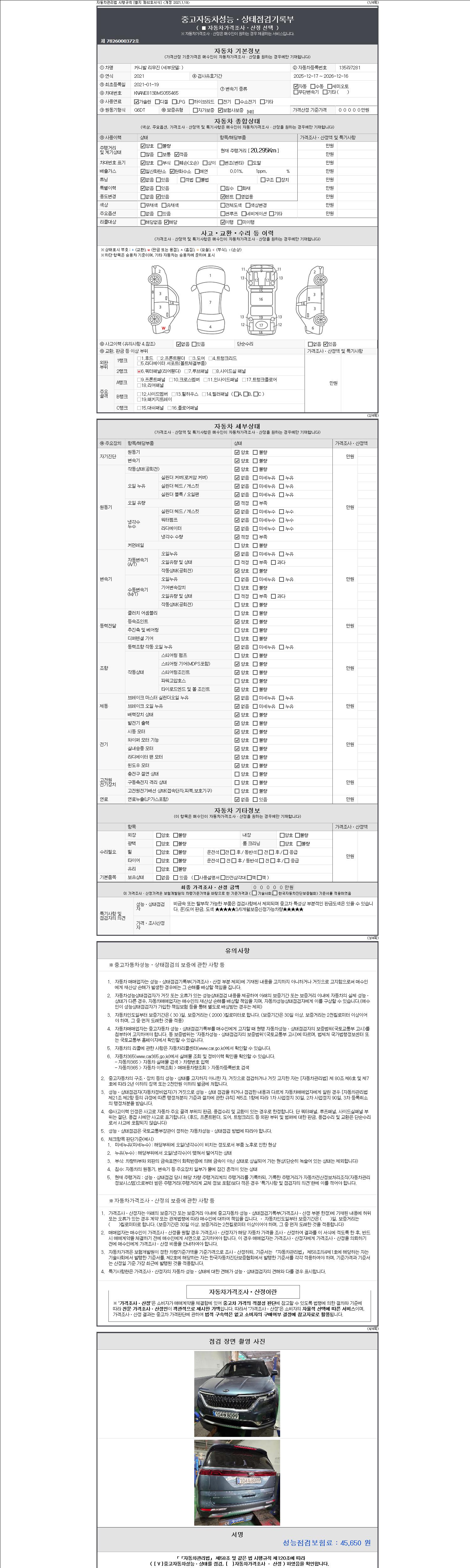 2. 차량 등록증이나 성능점검지 등을 상담자에게 요청및 확인하시고 사전에 미리 점검 하시기를 권유드립니다.