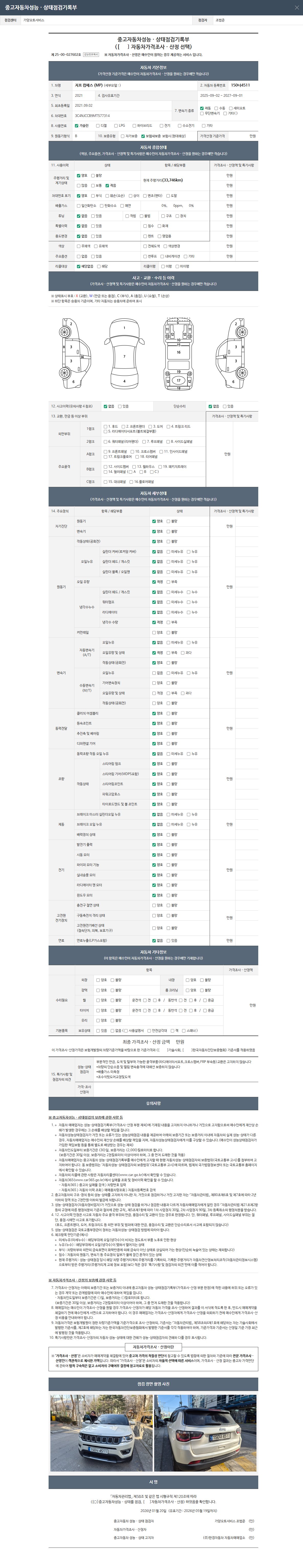 2. 차량 등록증이나 성능점검지 등을 상담자에게 요청및 확인하시고 사전에 미리 점검 하시기를 권유드립니다.
