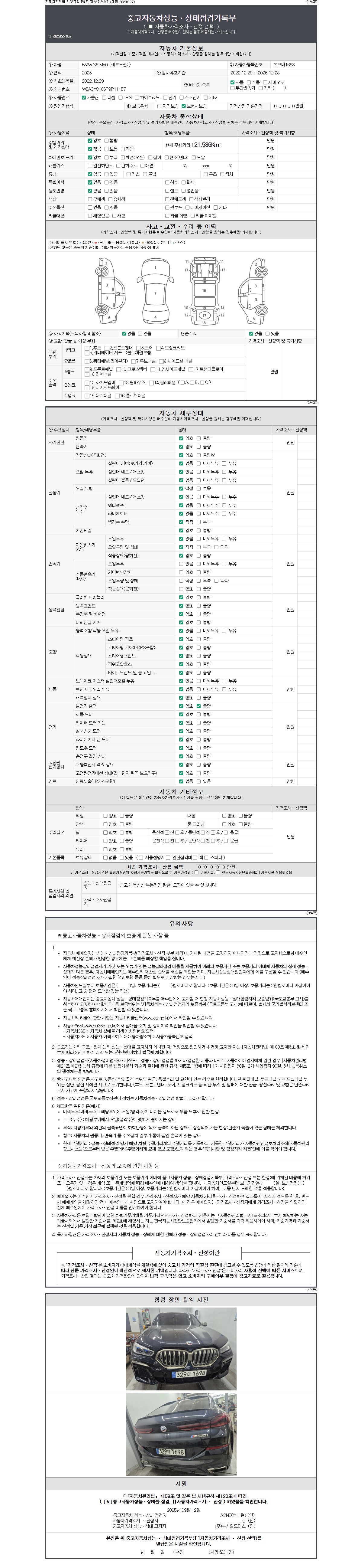 -중고자동차 매매업자를 통해 차량을 구입하실 경우 반드시 "중고자동차 성능, 상태점검 기록부"를 교뷰 받으셔야 하며, 매매업자는 반드시 의무 교부 하여야 압니다.
