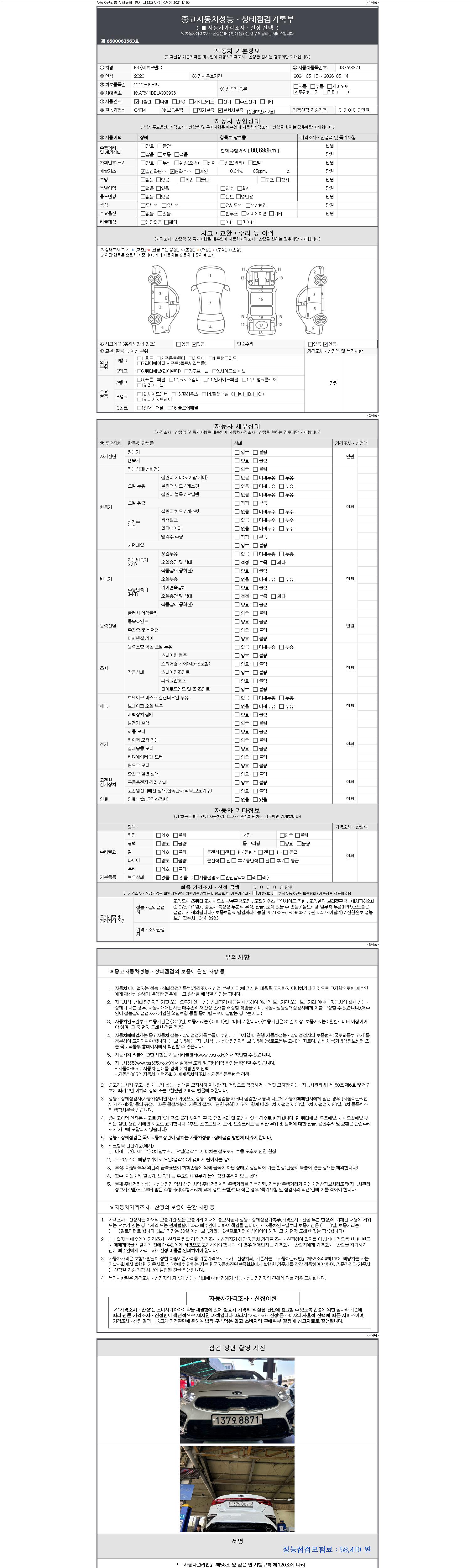 2. 차량 등록증이나 성능점검지 등을 상담자에게 요청및 확인하시고 사전에 미리 점검 하시기를 권유드립니다.
