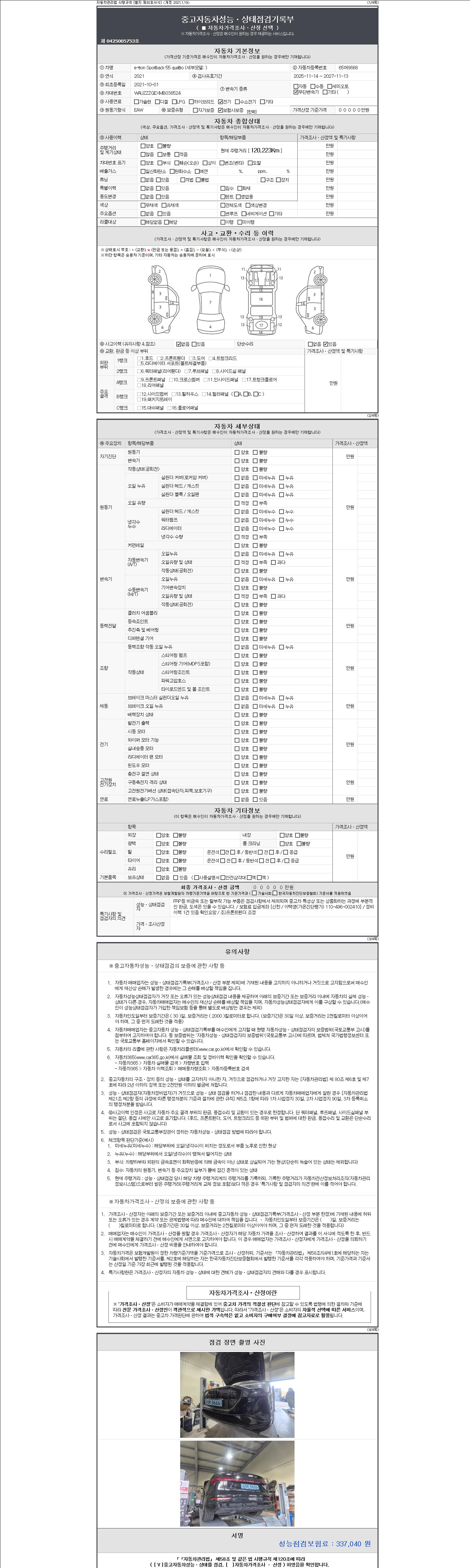 -중고자동차 매매업자를 통해 차량을 구입하실 경우 반드시 "중고자동차 성능, 상태점검 기록부"를 교뷰 받으셔야 하며, 매매업자는 반드시 의무 교부 하여야 압니다.