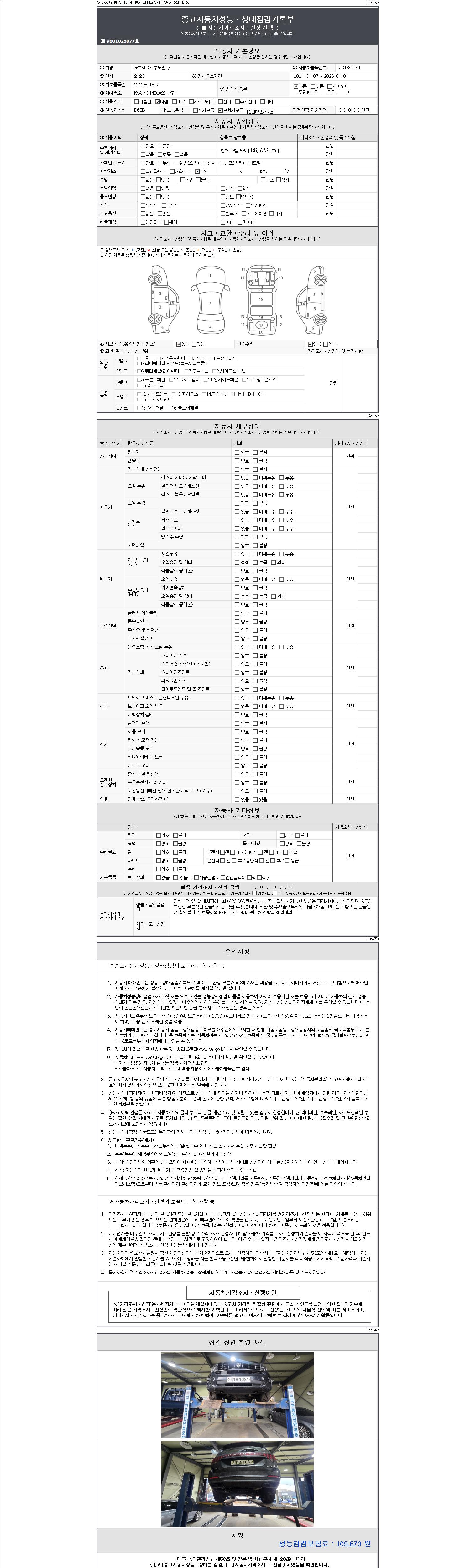 2. 차량 등록증이나 성능점검지 등을 상담자에게 요청및 확인하시고 사전에 미리 점검 하시기를 권유드립니다.