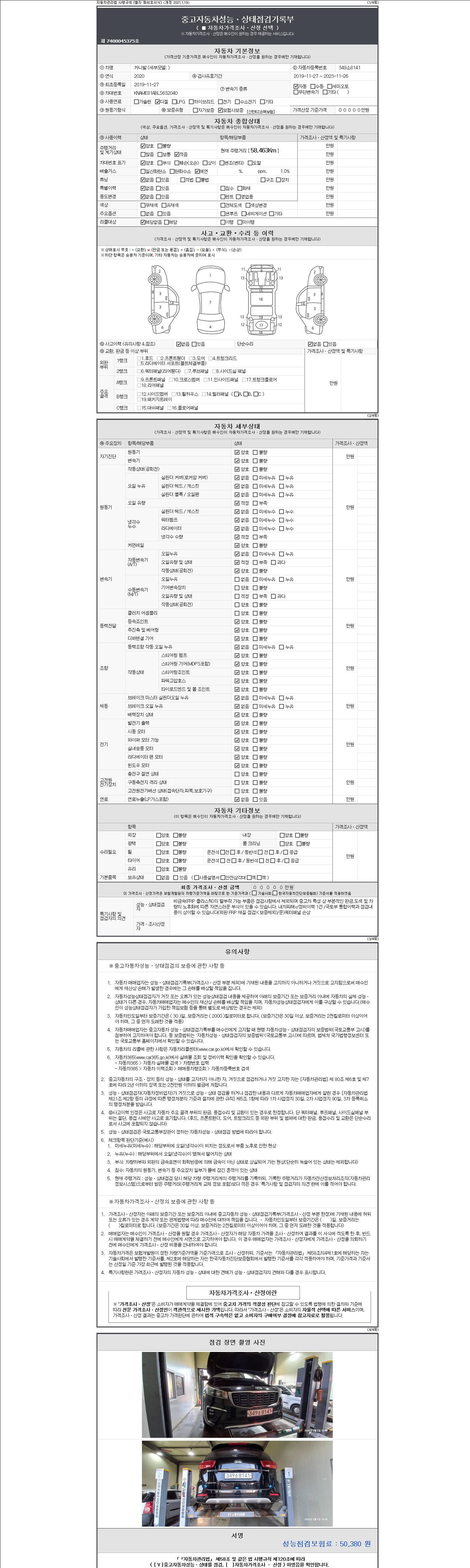 2. 차량 등록증이나 성능점검지 등을 상담자에게 요청및 확인하시고 사전에 미리 점검 하시기를 권유드립니다.