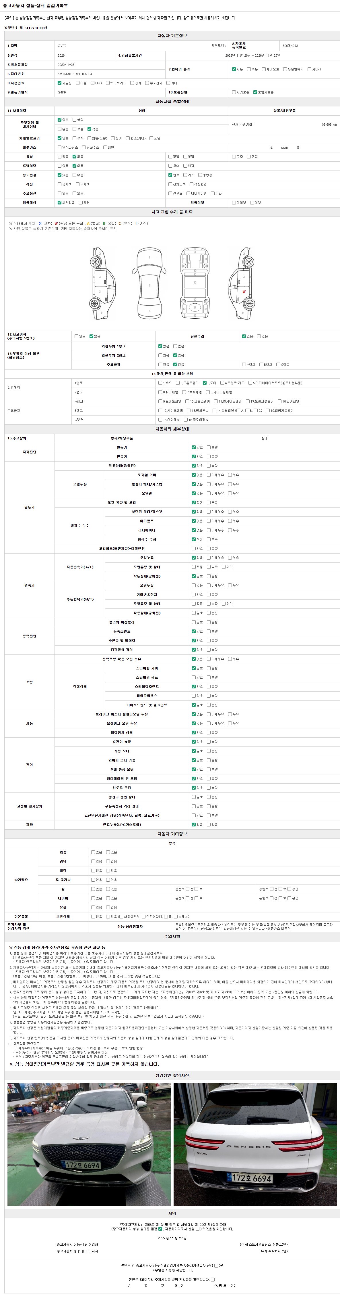 2. 차량 등록증이나 성능점검지 등을 상담자에게 요청및 확인하시고 사전에 미리 점검 하시기를 권유드립니다.