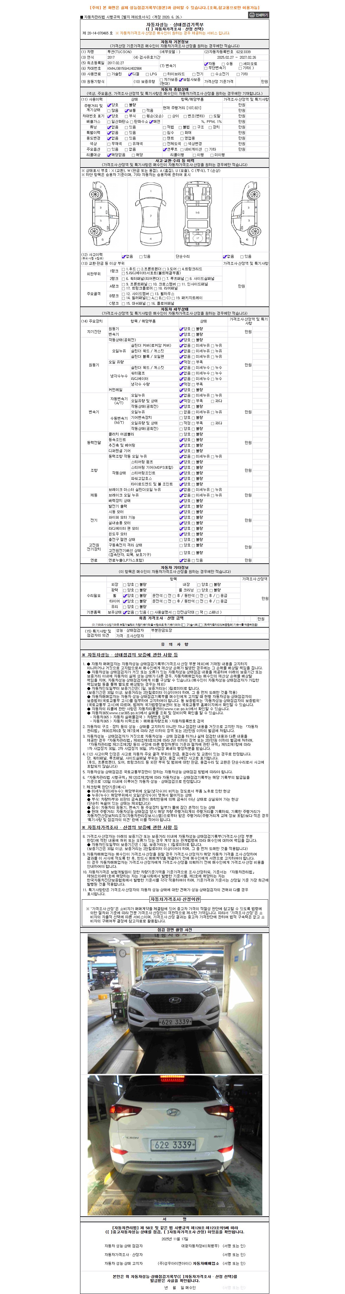 2. 차량 등록증이나 성능점검지 등을 상담자에게 요청및 확인하시고 사전에 미리 점검 하시기를 권유드립니다.