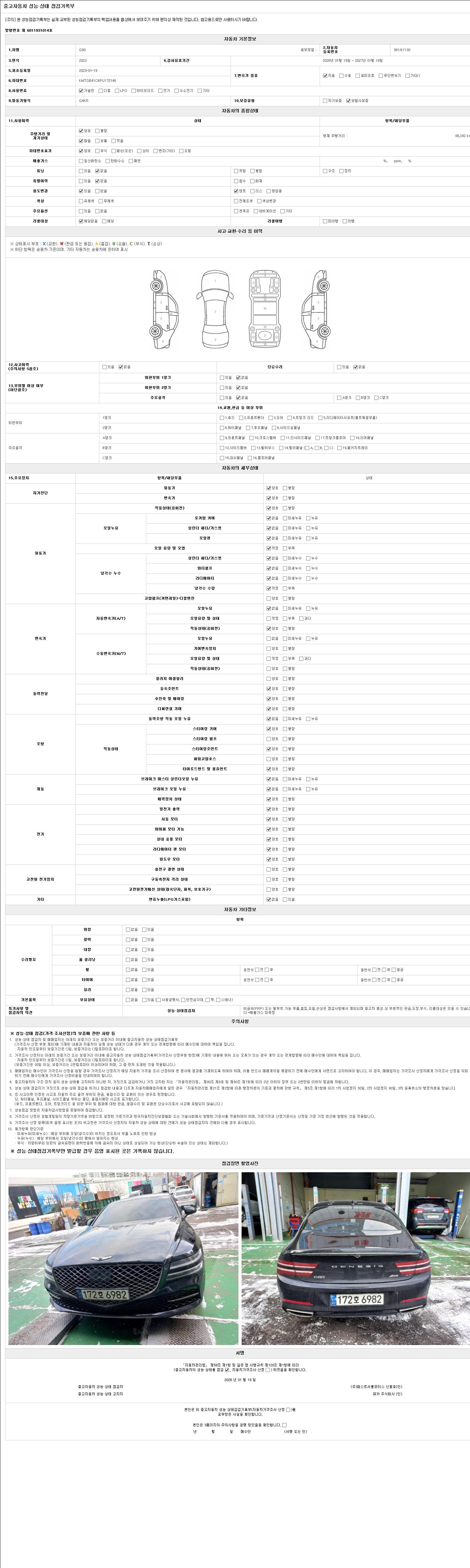 2. 차량 등록증이나 성능점검지 등을 상담자에게 요청및 확인하시고 사전에 미리 점검 하시기를 권유드립니다.