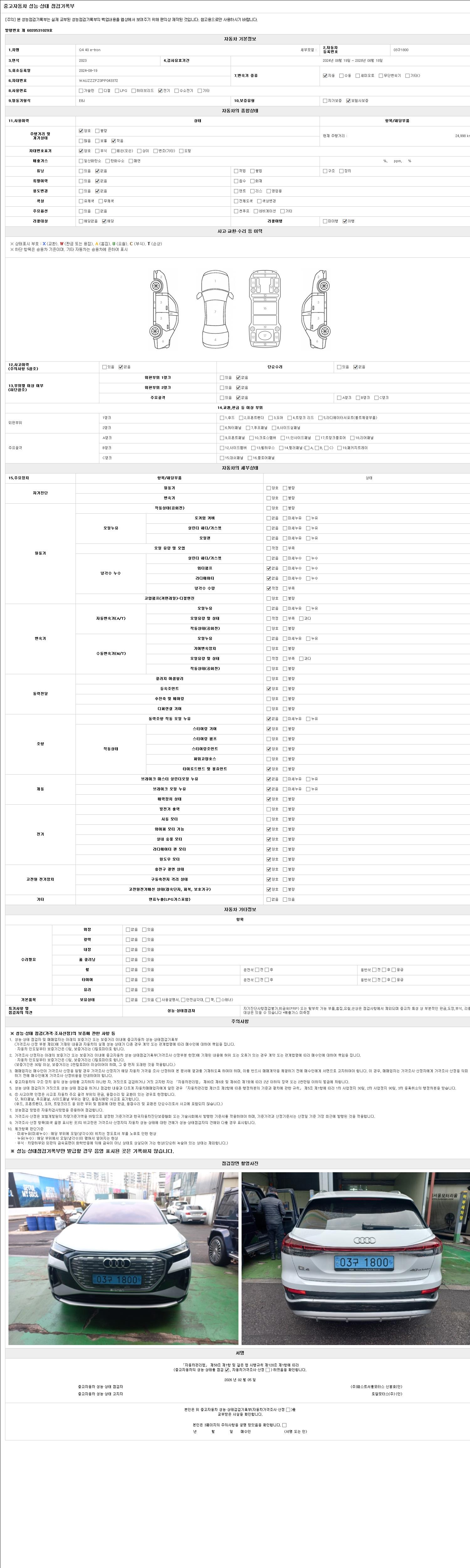 2. 차량 등록증이나 성능점검지 등을 상담자에게 요청및 확인하시고 사전에 미리 점검 하시기를 권유드립니다.