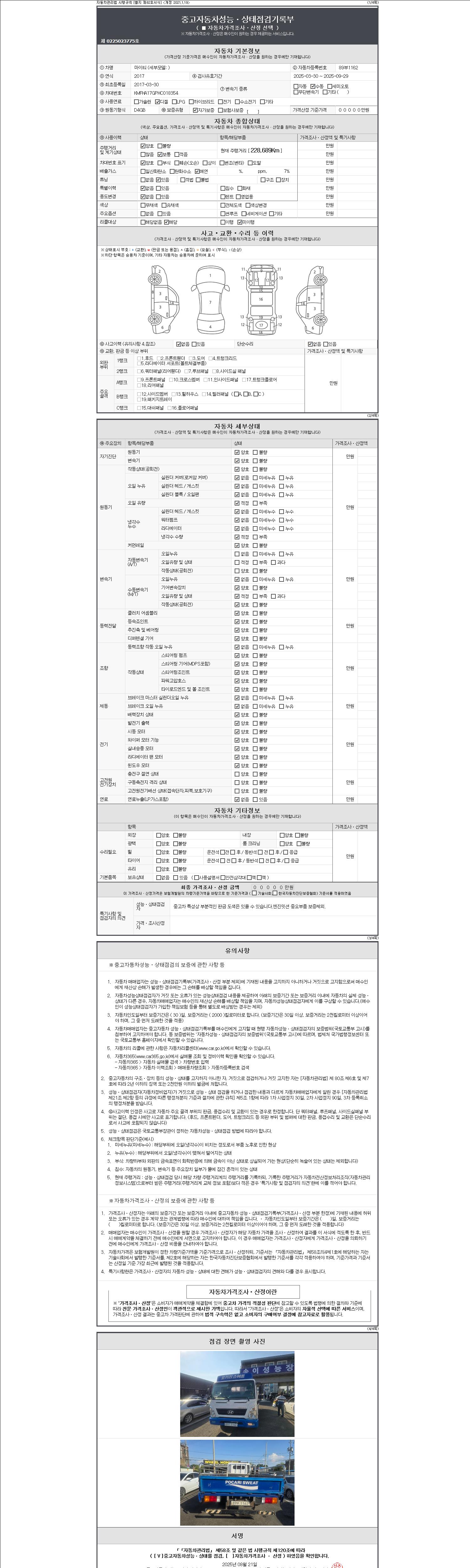 2. 차량 등록증이나 성능점검지 등을 상담자에게 요청및 확인하시고 사전에 미리 점검 하시기를 권유드립니다.