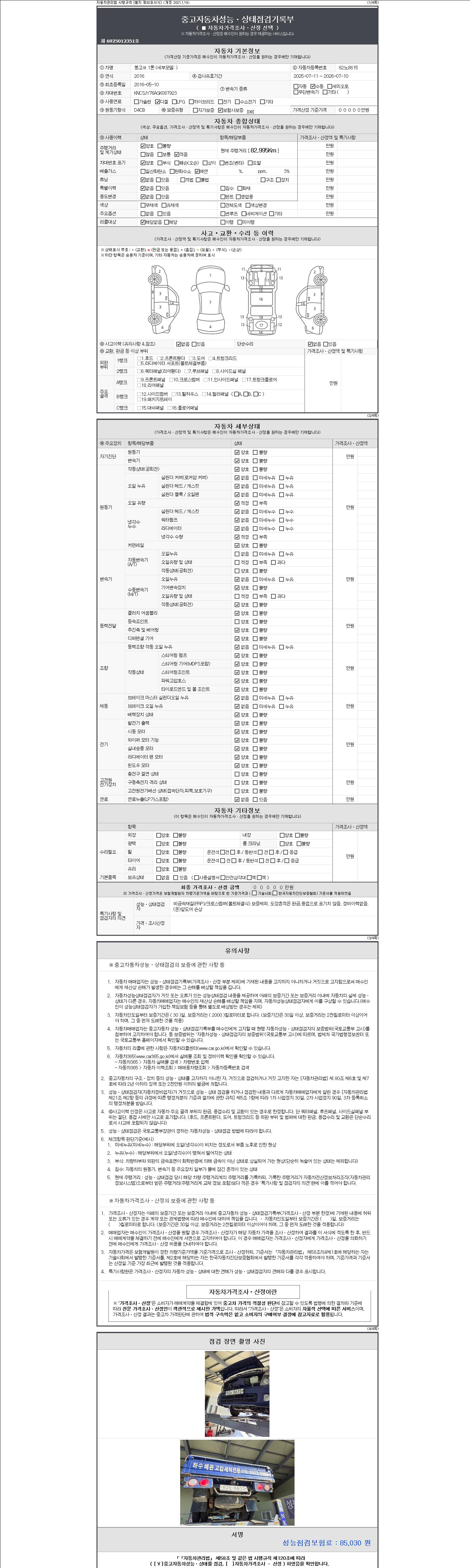 2. 차량 등록증이나 성능점검지 등을 상담자에게 요청및 확인하시고 사전에 미리 점검 하시기를 권유드립니다.