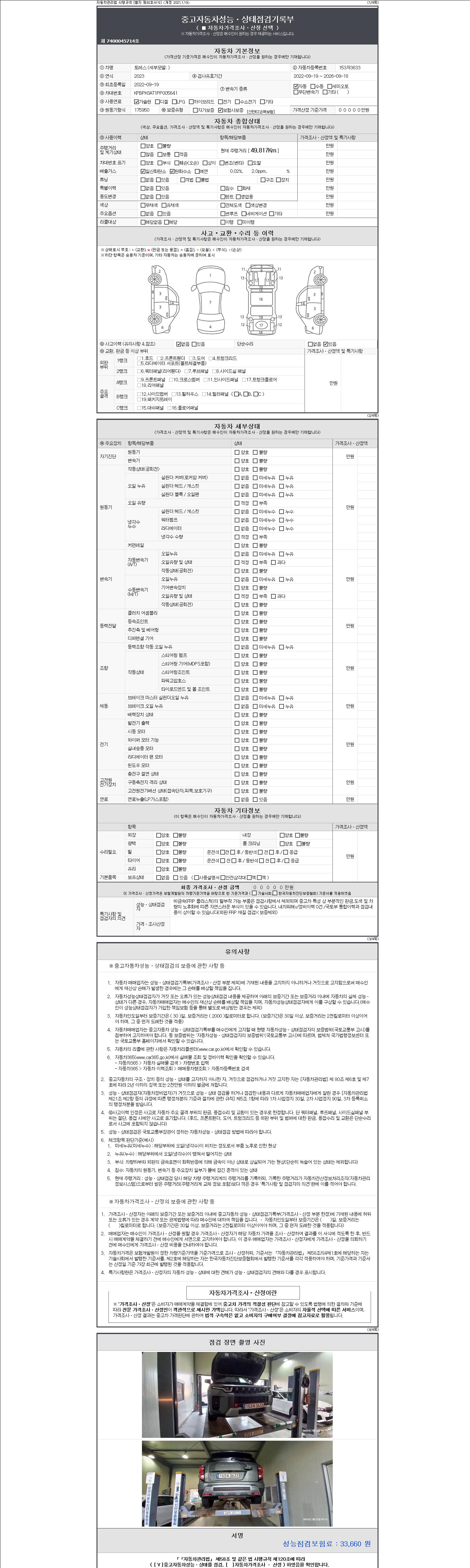 2. 차량 등록증이나 성능점검지 등을 상담자에게 요청및 확인하시고 사전에 미리 점검 하시기를 권유드립니다.