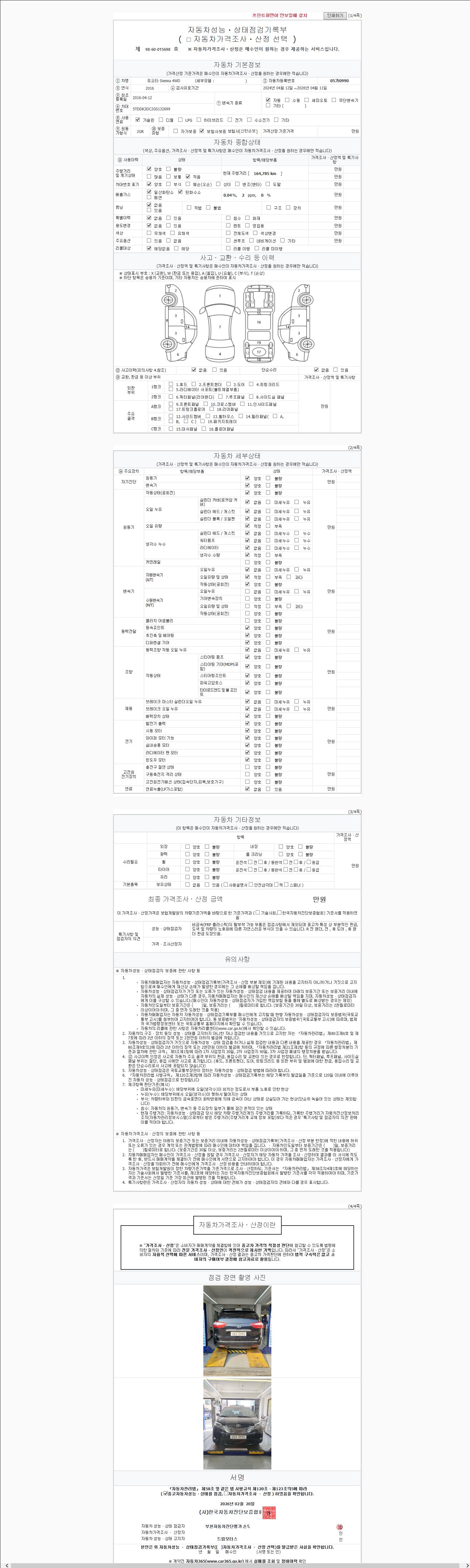 2. 차량 등록증이나 성능점검지 등을 상담자에게 요청및 확인하시고 사전에 미리 점검 하시기를 권유드립니다.