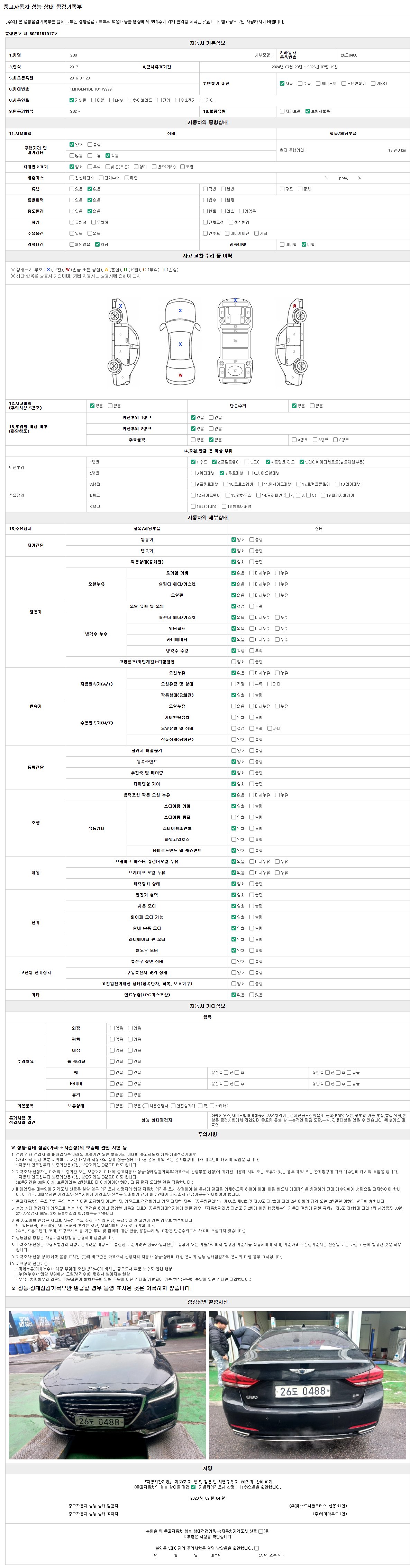 2. 차량 등록증이나 성능점검지 등을 상담자에게 요청및 확인하시고 사전에 미리 점검 하시기를 권유드립니다.