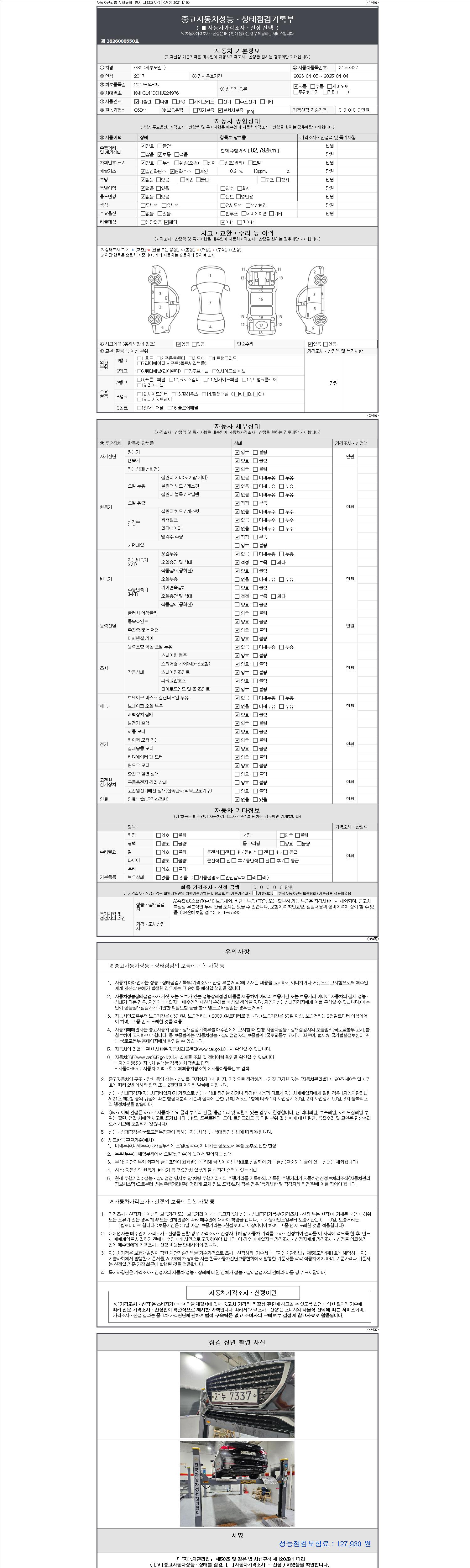 2. 차량 등록증이나 성능점검지 등을 상담자에게 요청및 확인하시고 사전에 미리 점검 하시기를 권유드립니다.