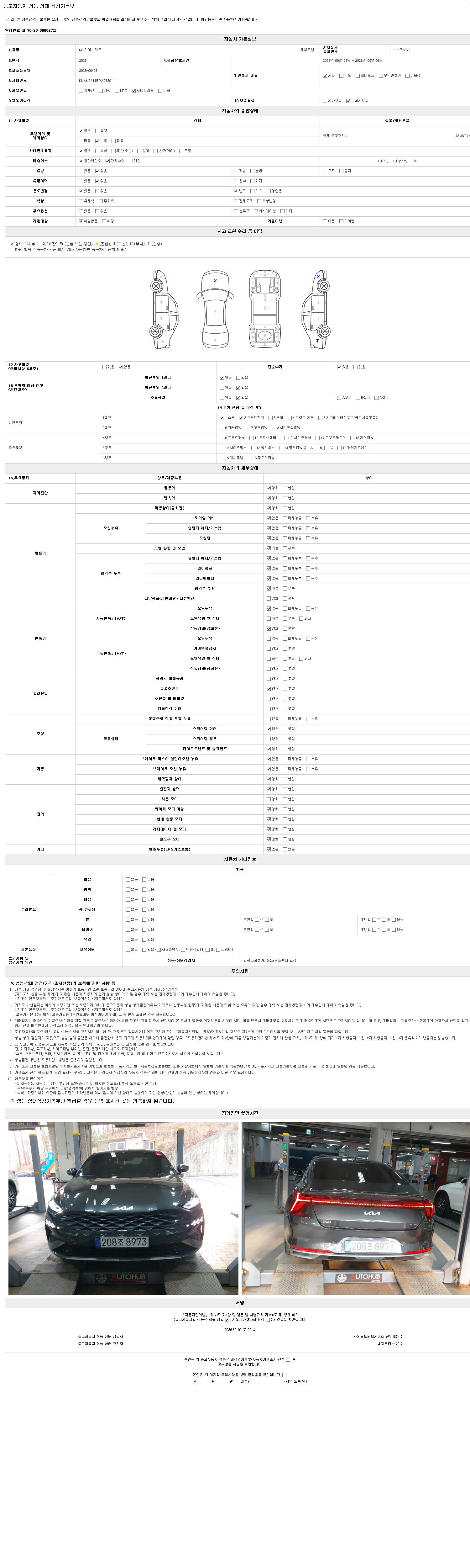2. 차량 등록증이나 성능점검지 등을 상담자에게 요청및 확인하시고 사전에 미리 점검 하시기를 권유드립니다.