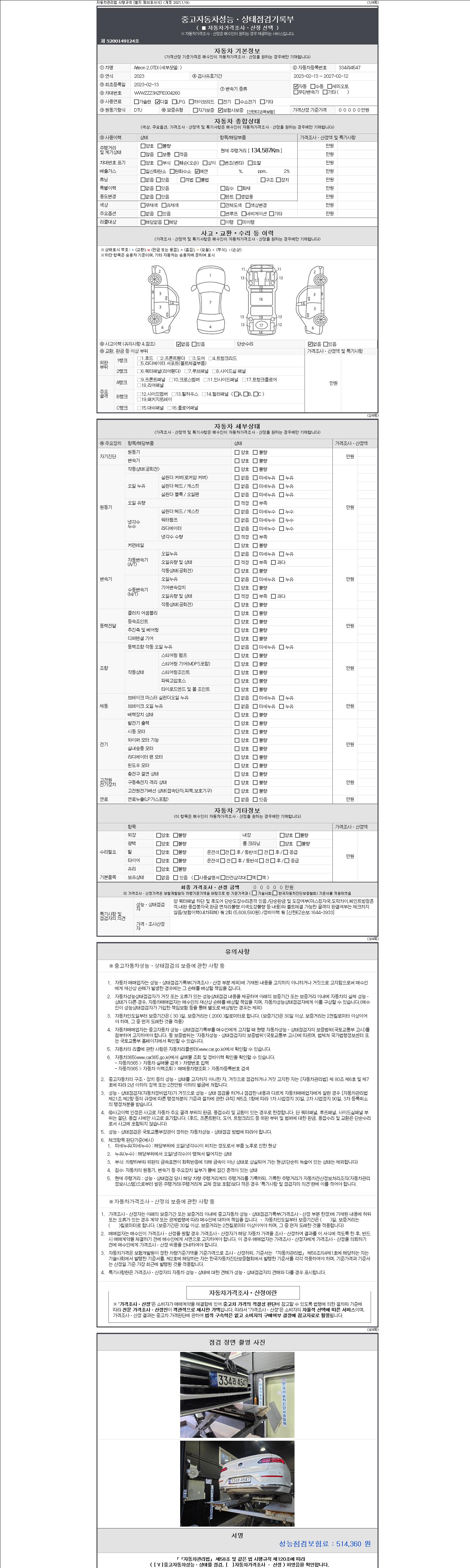2. 차량 등록증이나 성능점검지 등을 상담자에게 요청및 확인하시고 사전에 미리 점검 하시기를 권유드립니다.