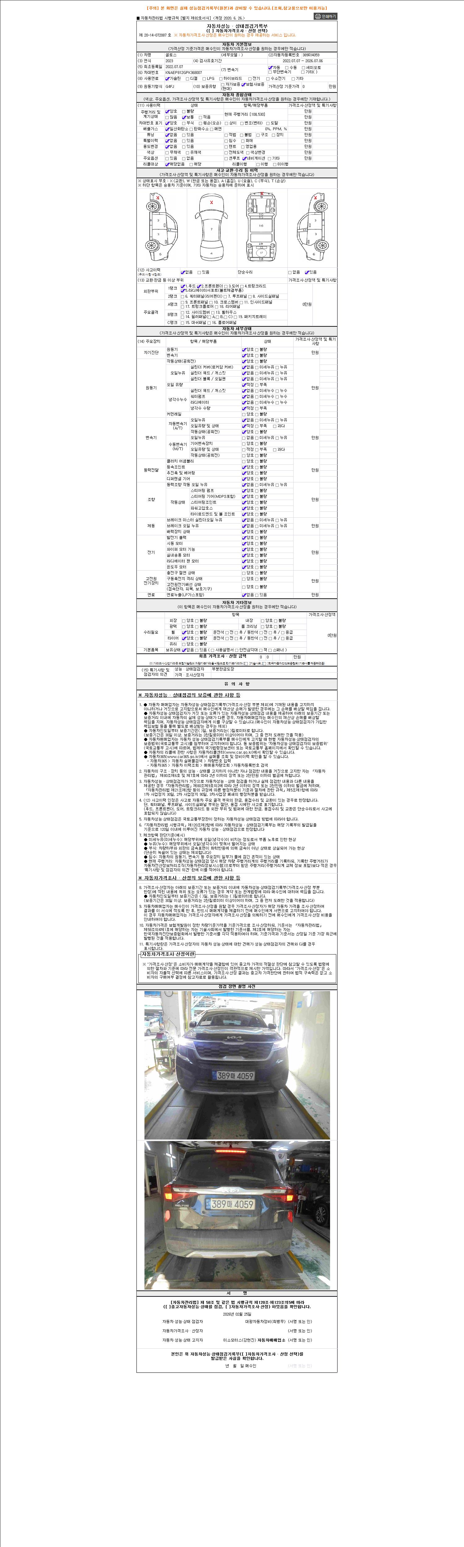 2. 차량 등록증이나 성능점검지 등을 상담자에게 요청및 확인하시고 사전에 미리 점검 하시기를 권유드립니다.