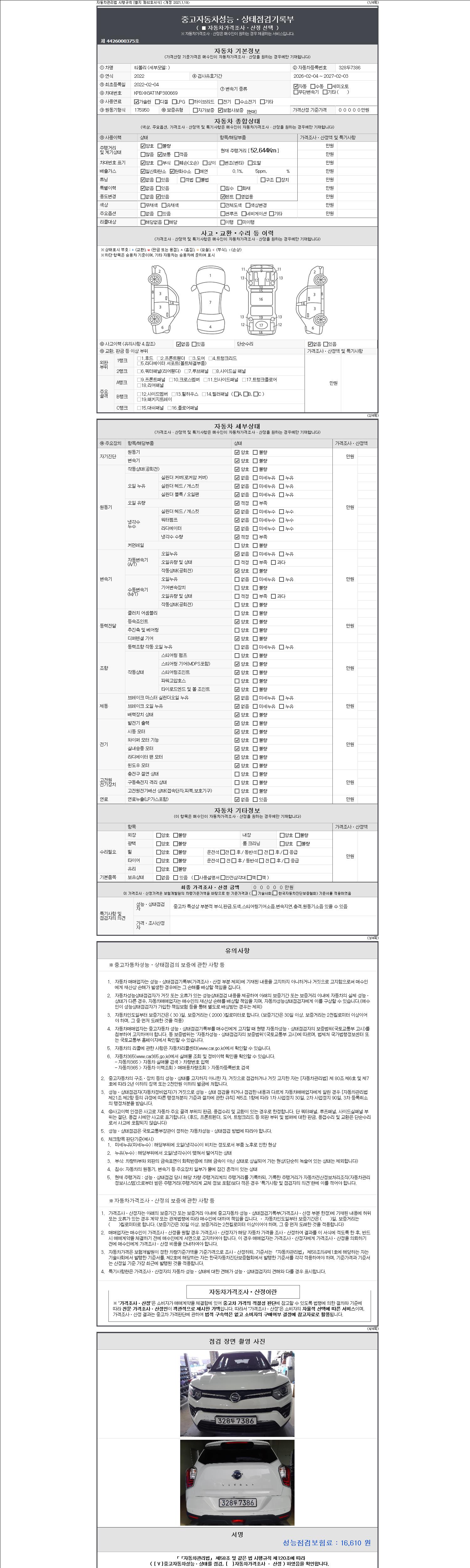 2. 차량 등록증이나 성능점검지 등을 상담자에게 요청및 확인하시고 사전에 미리 점검 하시기를 권유드립니다.