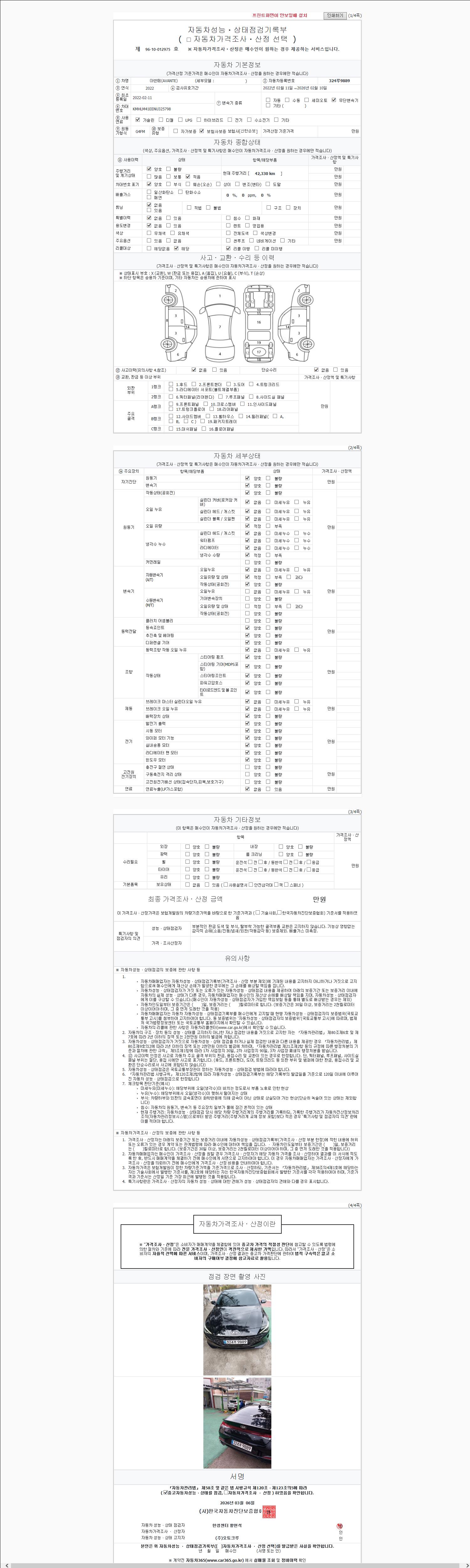 -중고자동차 매매업자를 통해 차량을 구입하실 경우 반드시 "중고자동차 성능, 상태점검 기록부"를 교뷰 받으셔야 하며, 매매업자는 반드시 의무 교부 하여야 압니다.