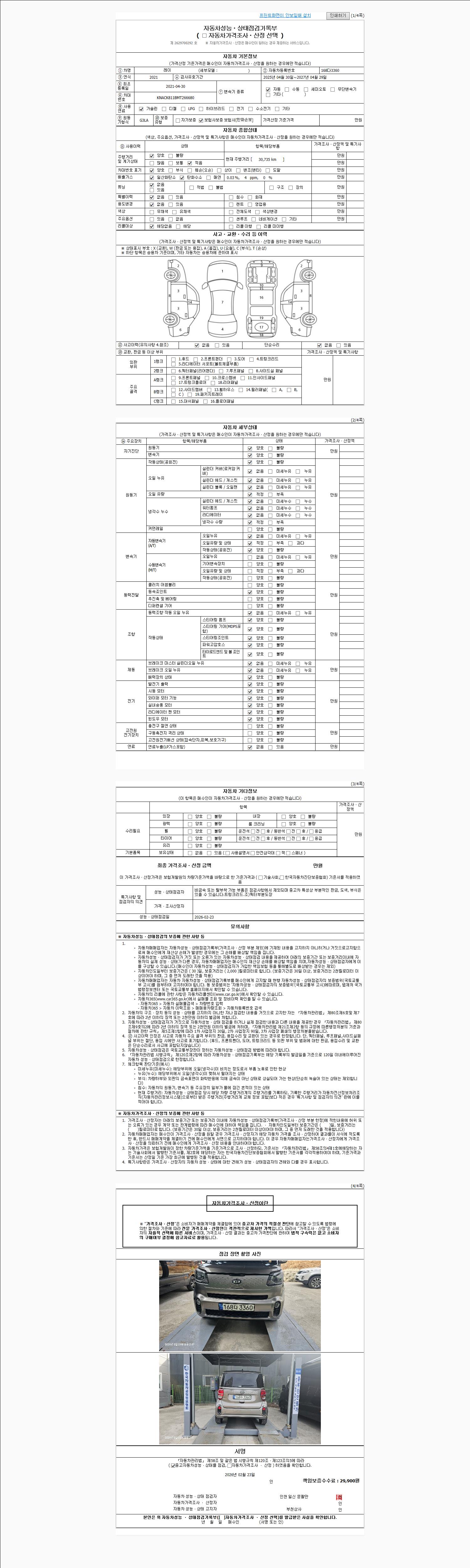 2. 차량 등록증이나 성능점검지 등을 상담자에게 요청및 확인하시고 사전에 미리 점검 하시기를 권유드립니다.