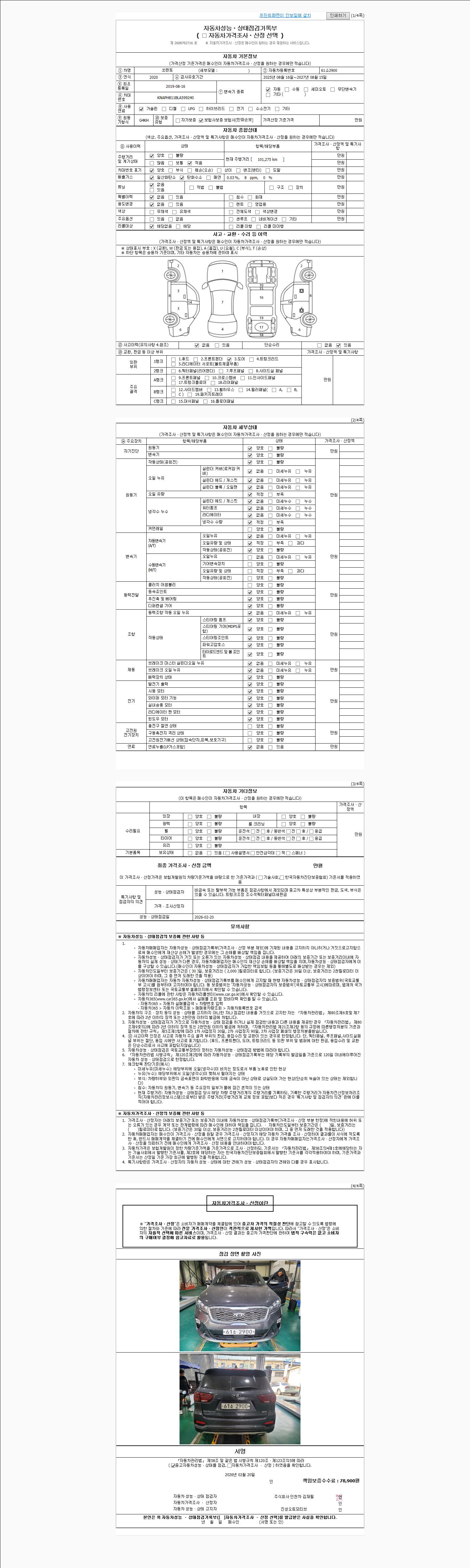 2. 차량 등록증이나 성능점검지 등을 상담자에게 요청및 확인하시고 사전에 미리 점검 하시기를 권유드립니다.