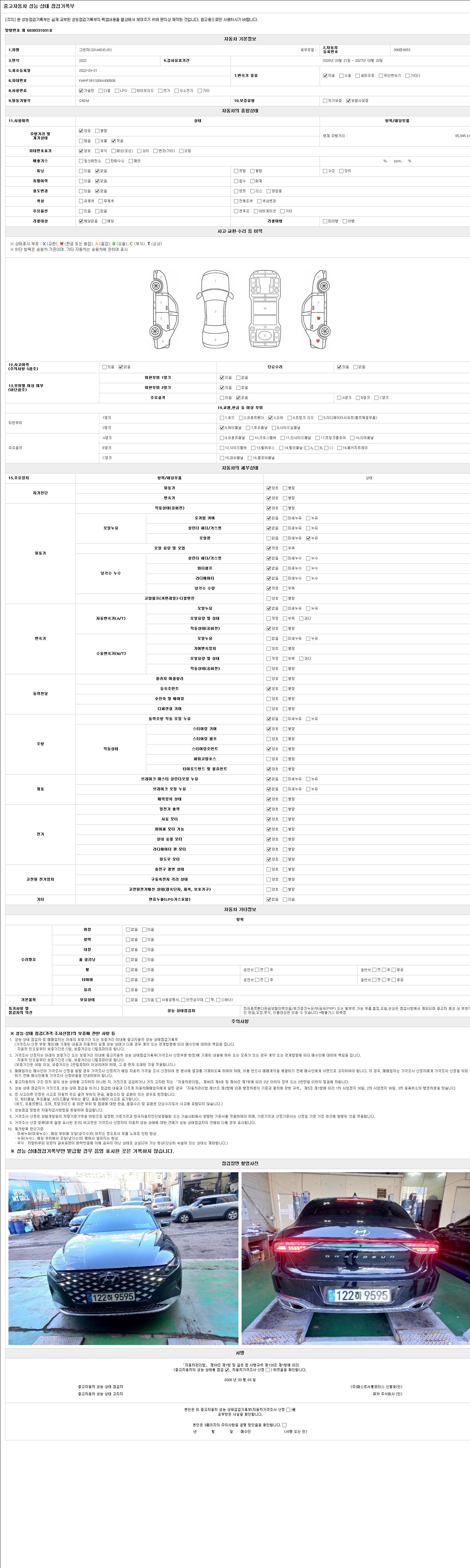 2. 차량 등록증이나 성능점검지 등을 상담자에게 요청및 확인하시고 사전에 미리 점검 하시기를 권유드립니다.