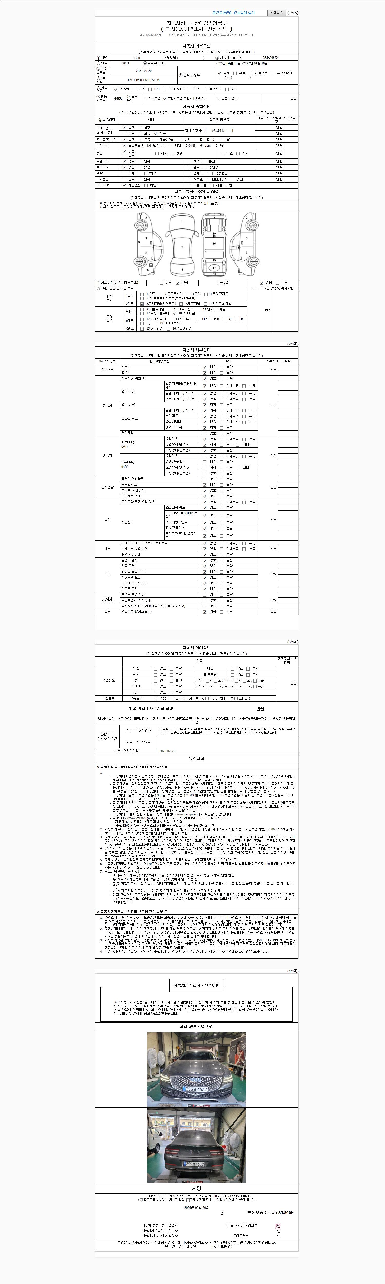 2. 차량 등록증이나 성능점검지 등을 상담자에게 요청및 확인하시고 사전에 미리 점검 하시기를 권유드립니다.