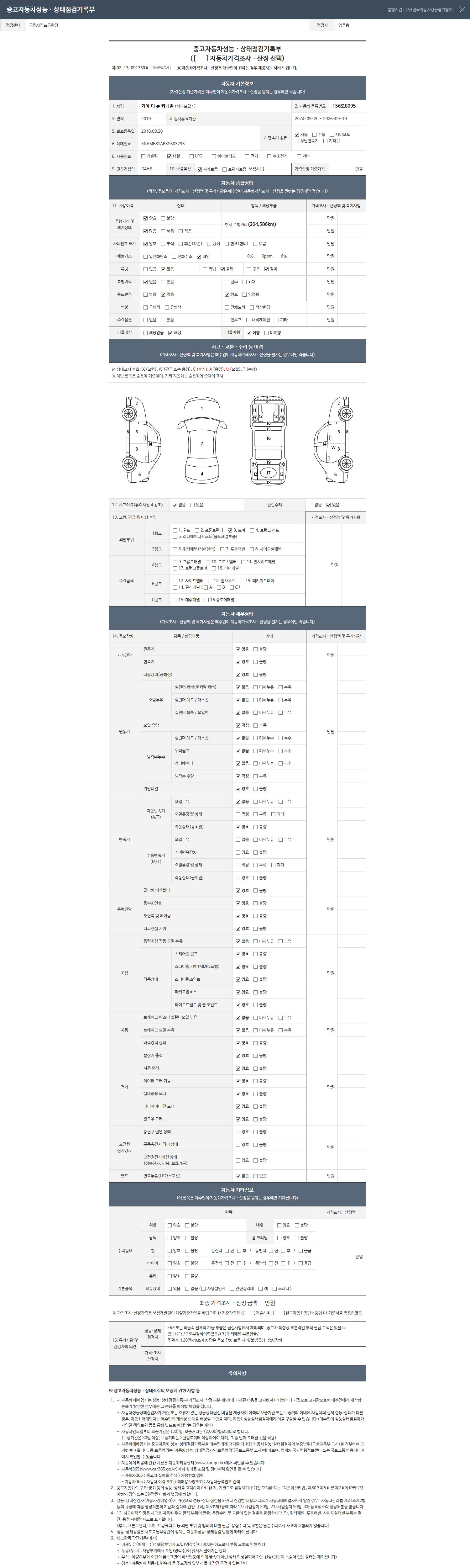 2. 차량 등록증이나 성능점검지 등을 상담자에게 요청및 확인하시고 사전에 미리 점검 하시기를 권유드립니다.