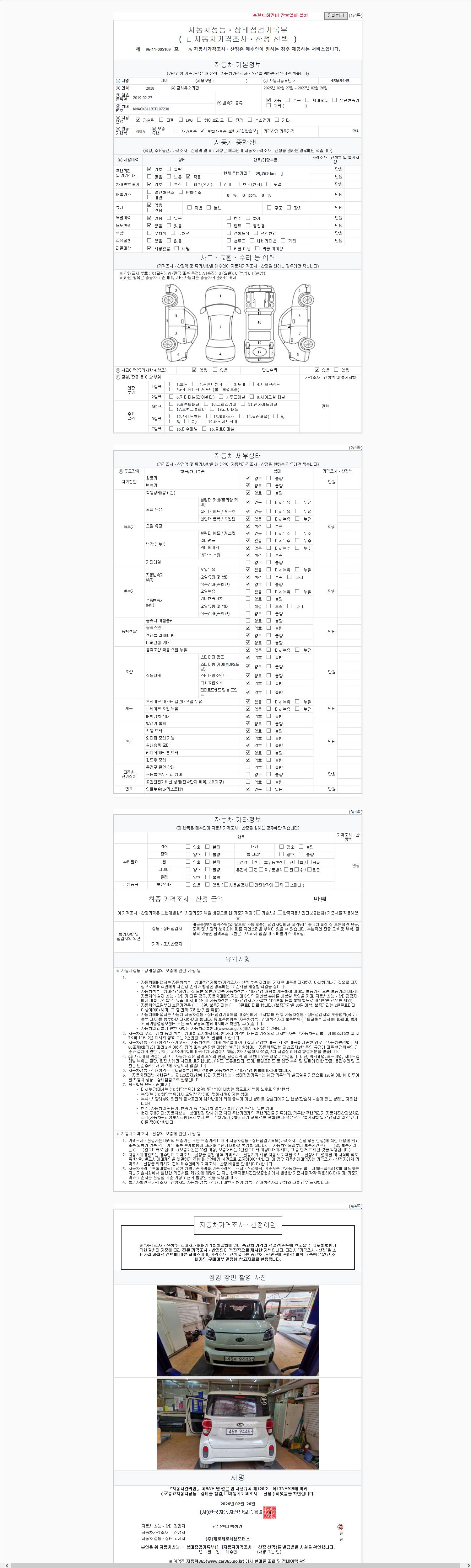 2. 차량 등록증이나 성능점검지 등을 상담자에게 요청및 확인하시고 사전에 미리 점검 하시기를 권유드립니다.