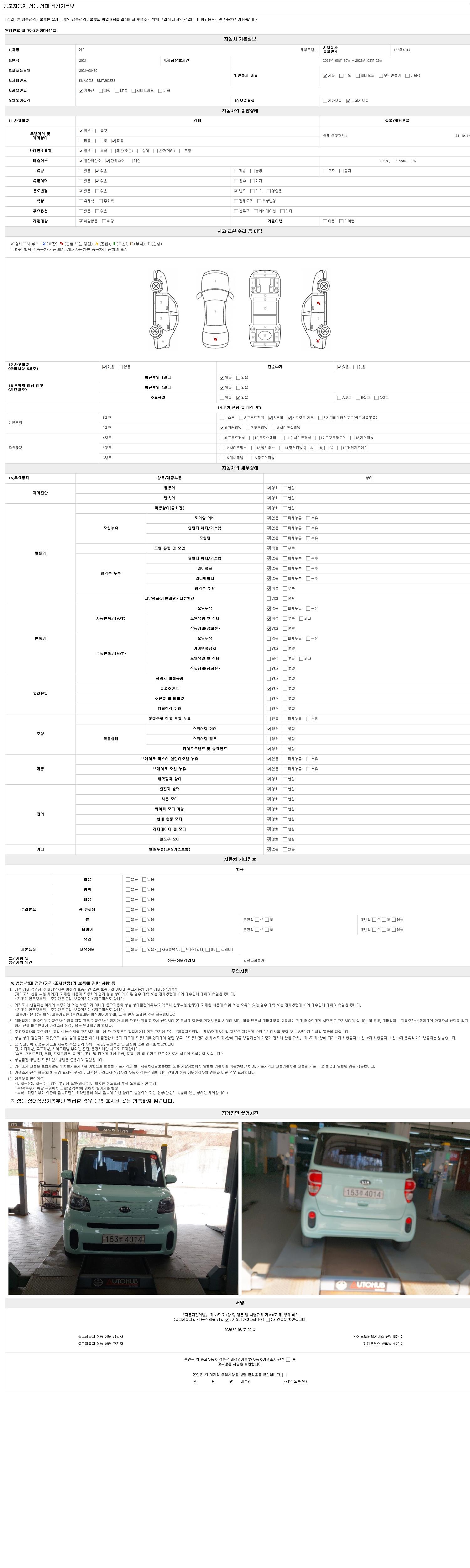 -중고자동차 매매업자를 통해 차량을 구입하실 경우 반드시 "중고자동차 성능, 상태점검 기록부"를 교뷰 받으셔야 하며, 매매업자는 반드시 의무 교부 하여야 압니다.